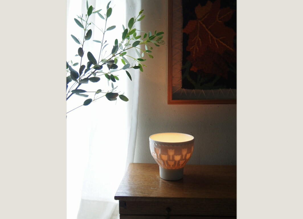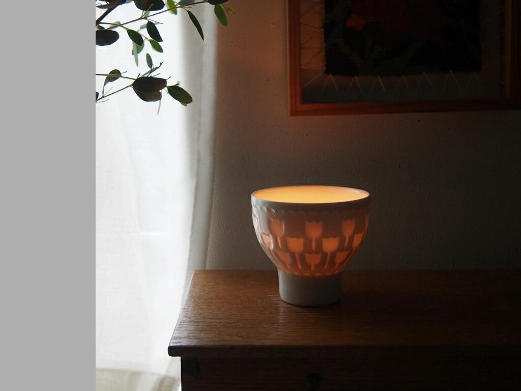 北欧ヴィンテージ 灯すとチューリップ模様が浮かぶ Rorstrand Gunnar Nylund ロールストランド 陶器のキャンドルスタンド