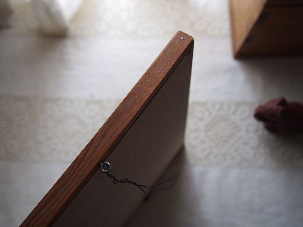 裏面に壁掛け用のワイヤーがありますので、ピン