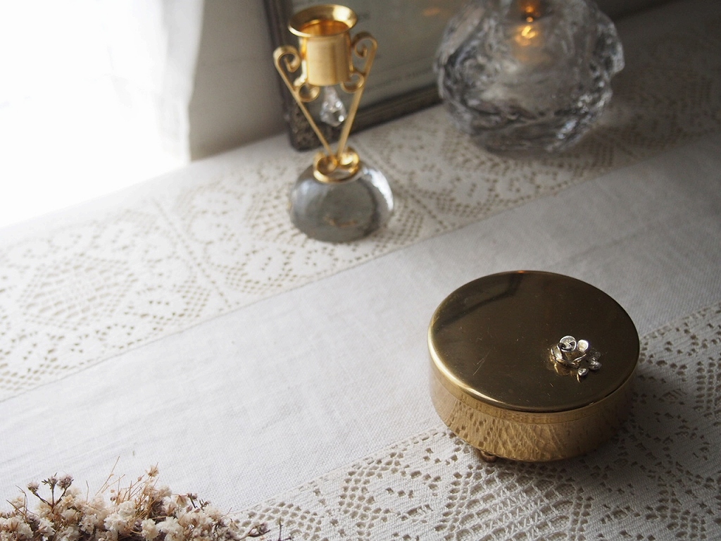 北欧ヴィンテージ雑貨 Skultuna 真鍮のジュエリーボックス/バラの装飾/スウェーデン 1950〜1970年代 [IVM251-00708]