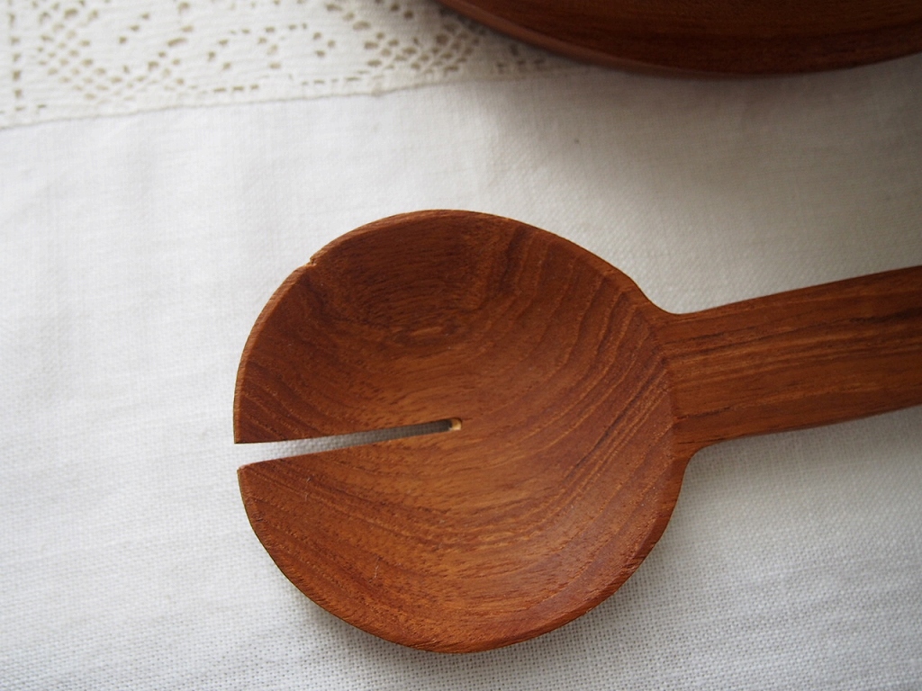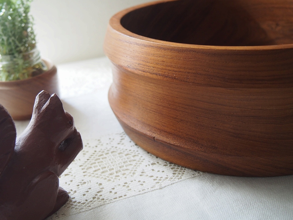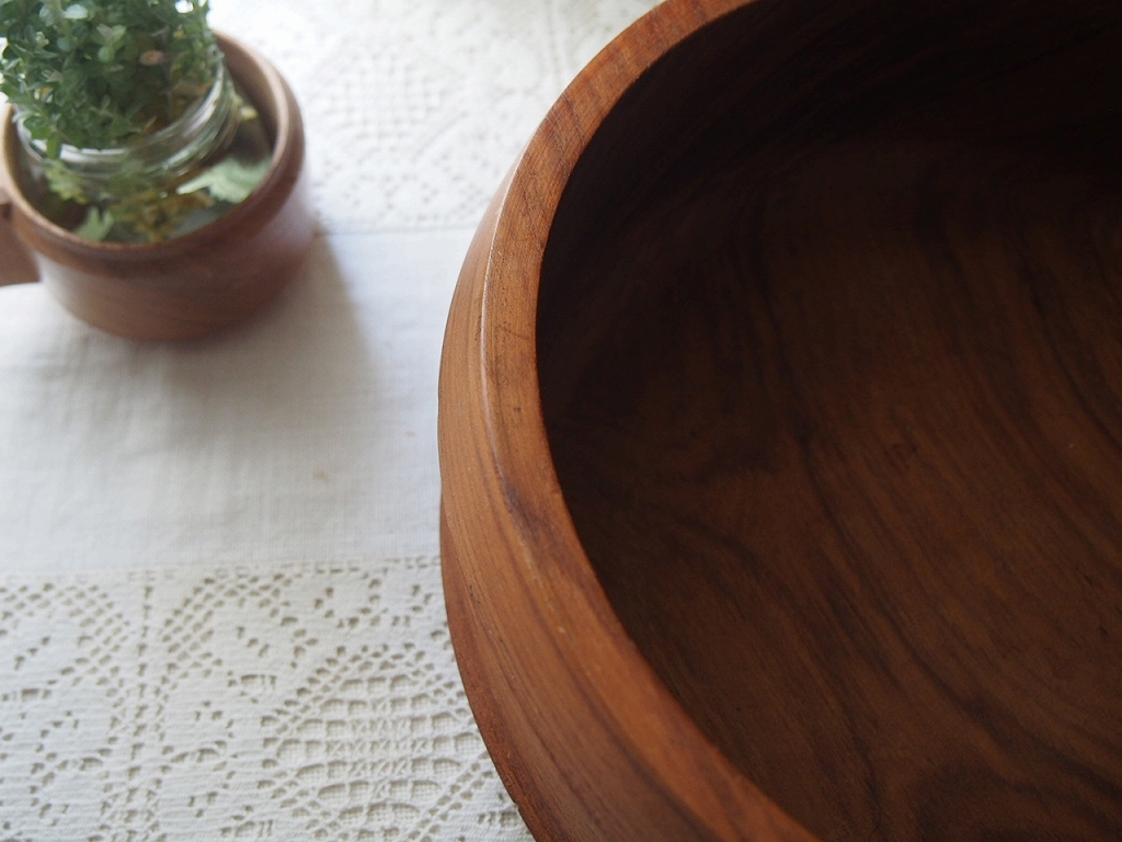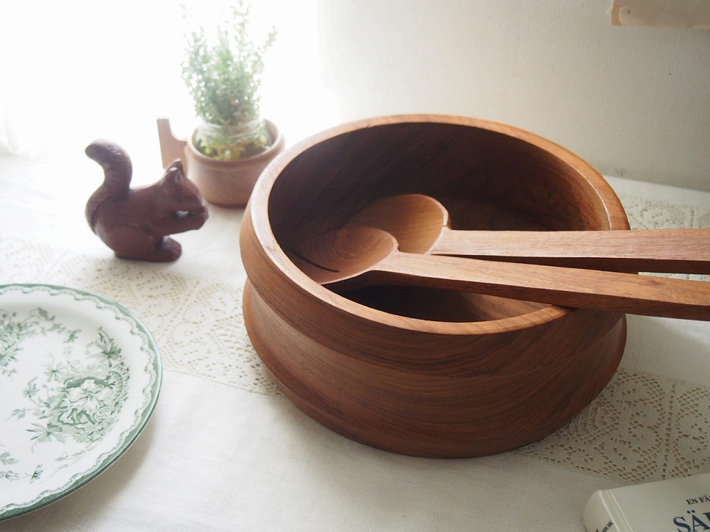 北欧ヴィンテージ雑貨 チークボウル&サーバーセット/深みある木目とやさしい艶/スウェーデン 1960–70年代