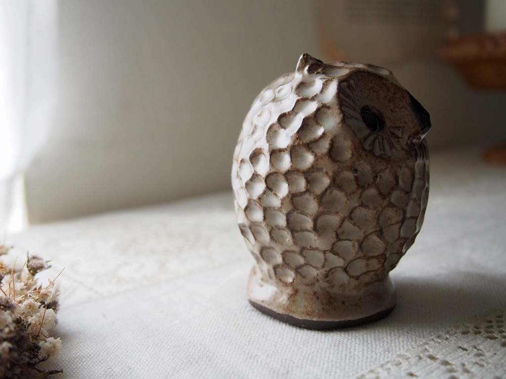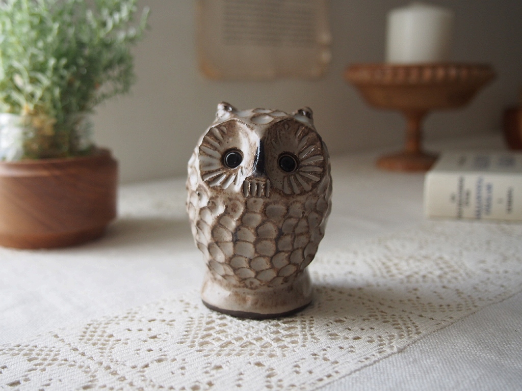 北欧ヴィンテージ Bengt Wall (Wall Trosa) 陶器のふくろう置物 スウェーデン購入者 さん小さいのにどっしりと重いのにびっくりしました。大きなつぶらな瞳に癒されます。お鼻の欠けは残念ですが、お目目がかわいいので帳消しです。早速飾りました。どうもありがとうございました。