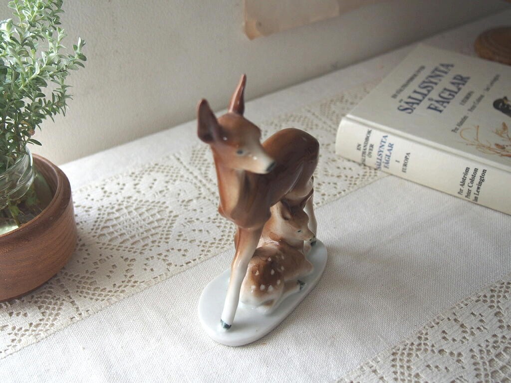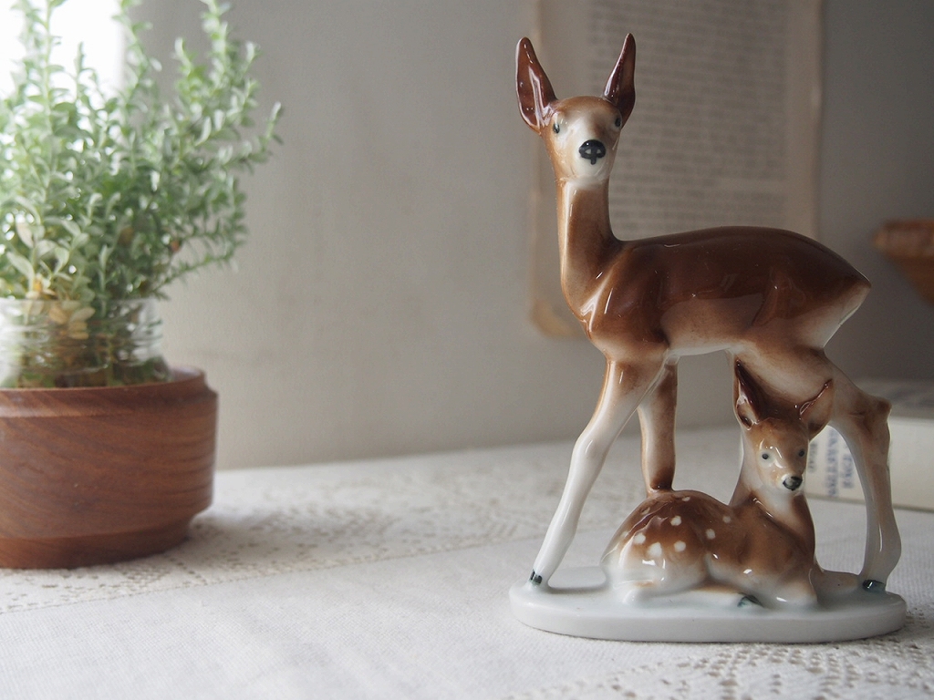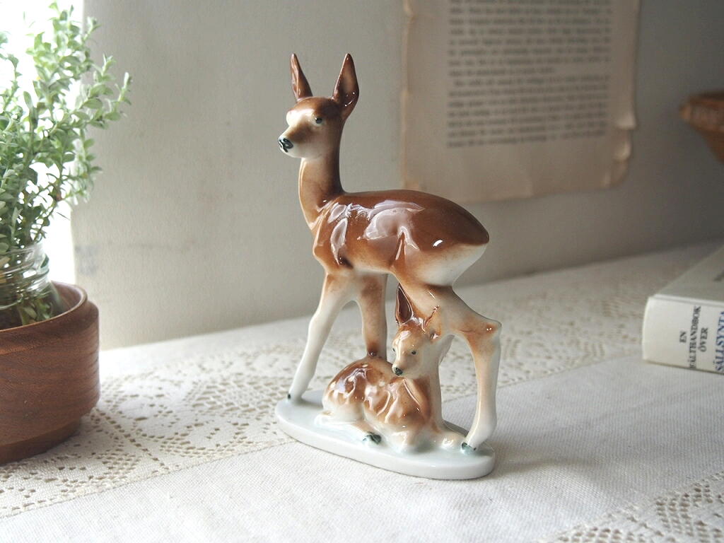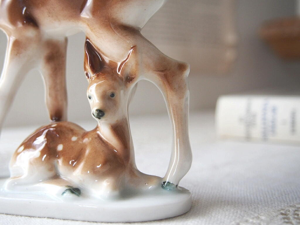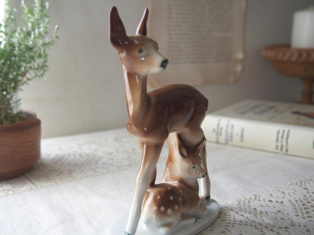 ドイツでつくられた、鹿の親子の磁器の置物