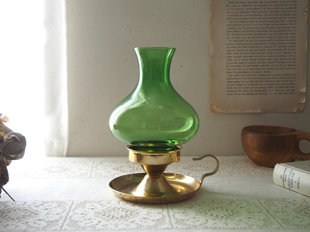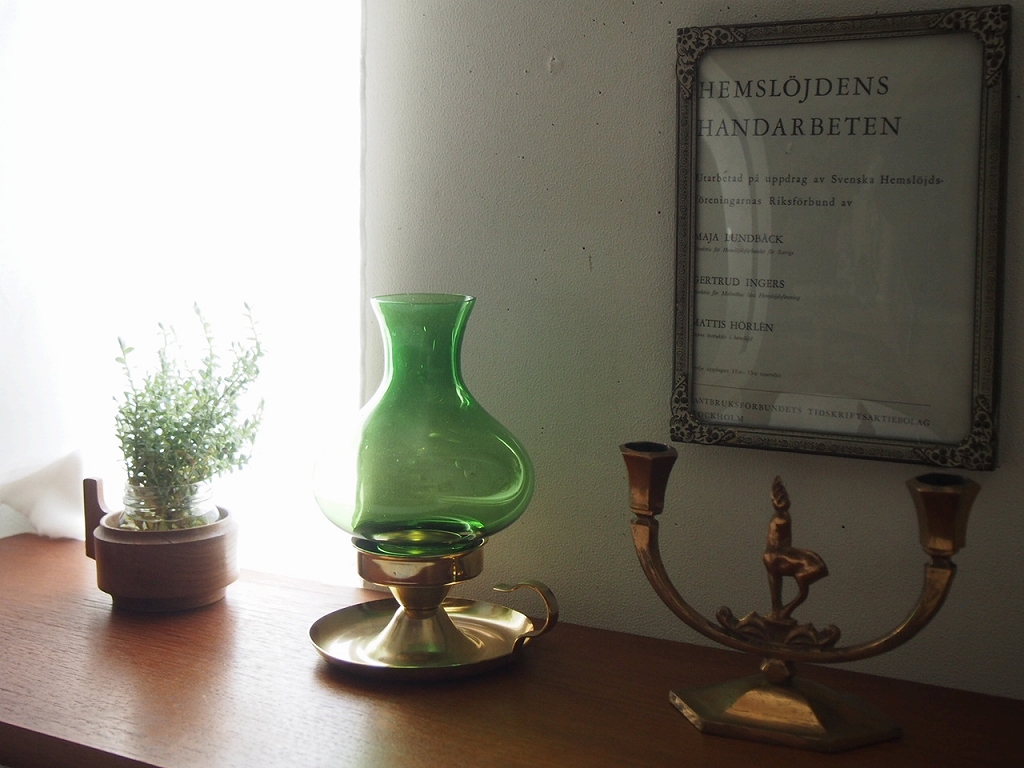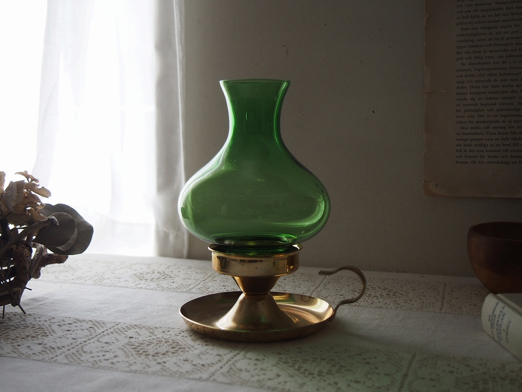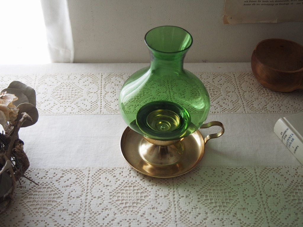 北欧ヴィンテージ雑貨 手吹きガラスと真鍮色のキャンドルホルダー/スウェーデン 1970年代
