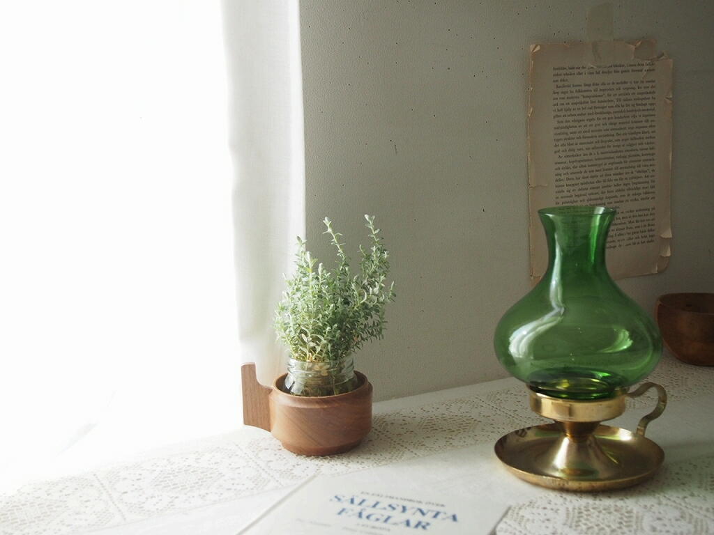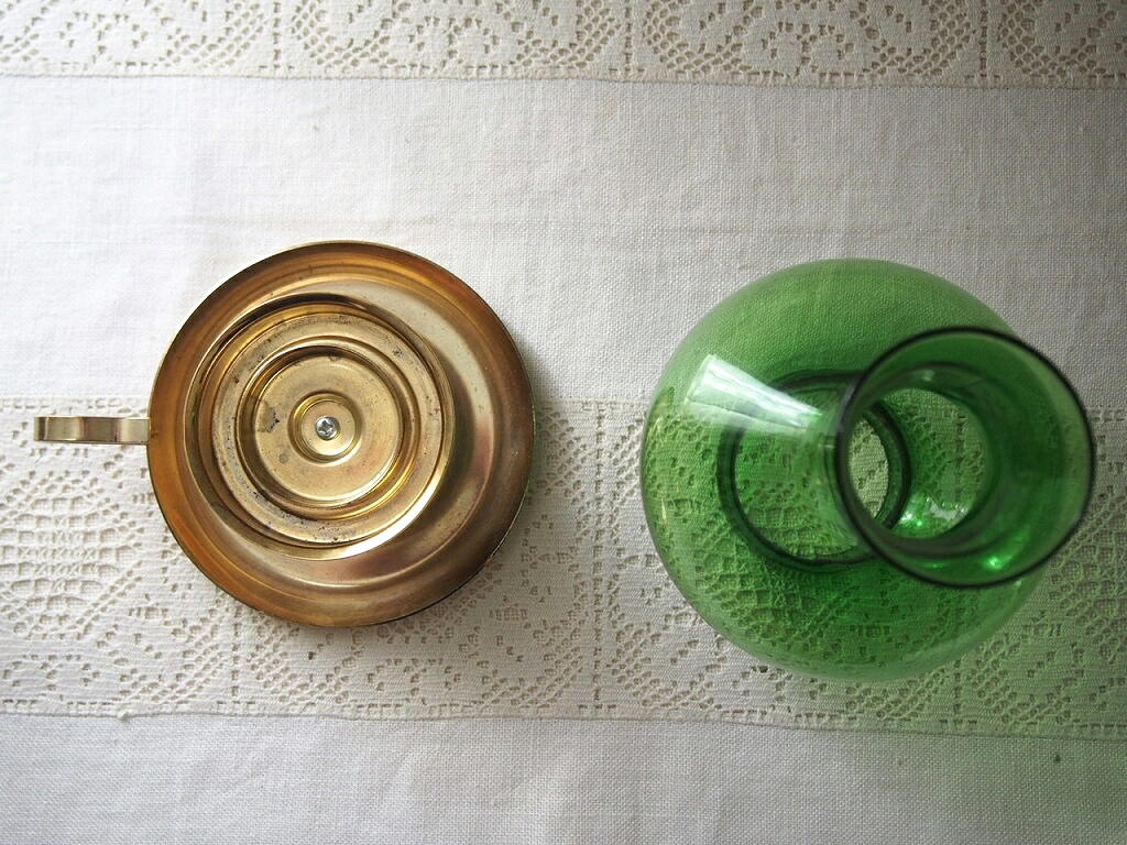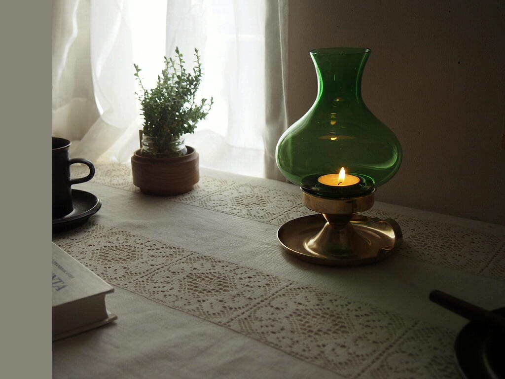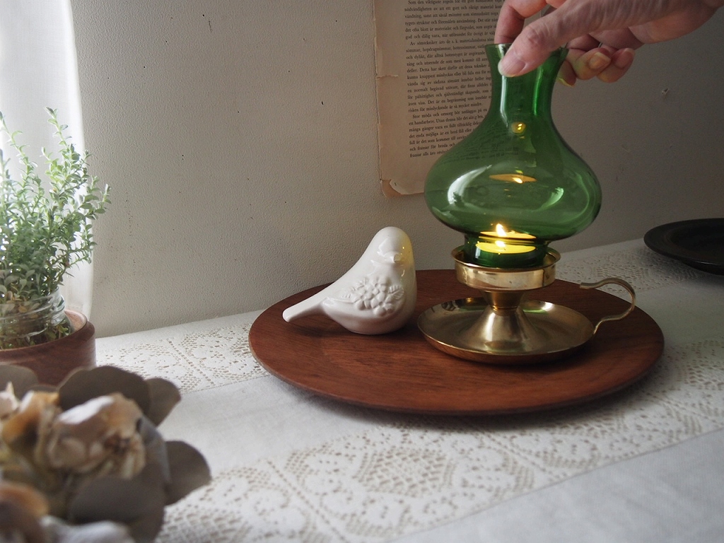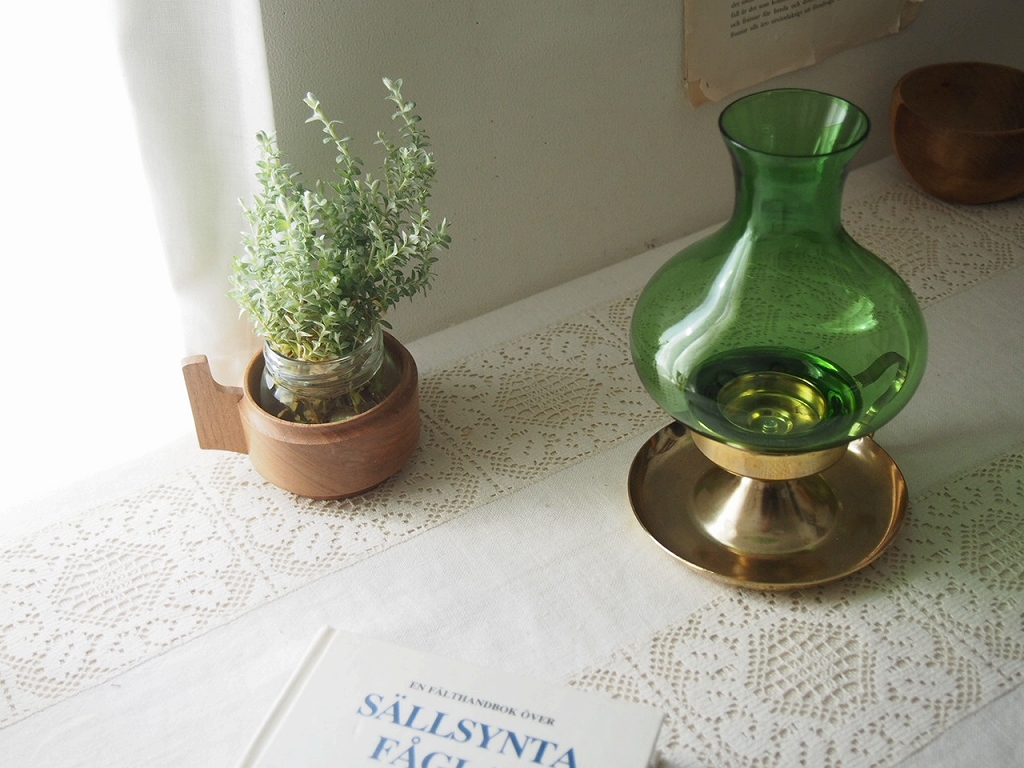 北欧ヴィンテージ雑貨 手吹きガラスと真鍮色のキャンドルホルダー/スウェーデン 1970年代