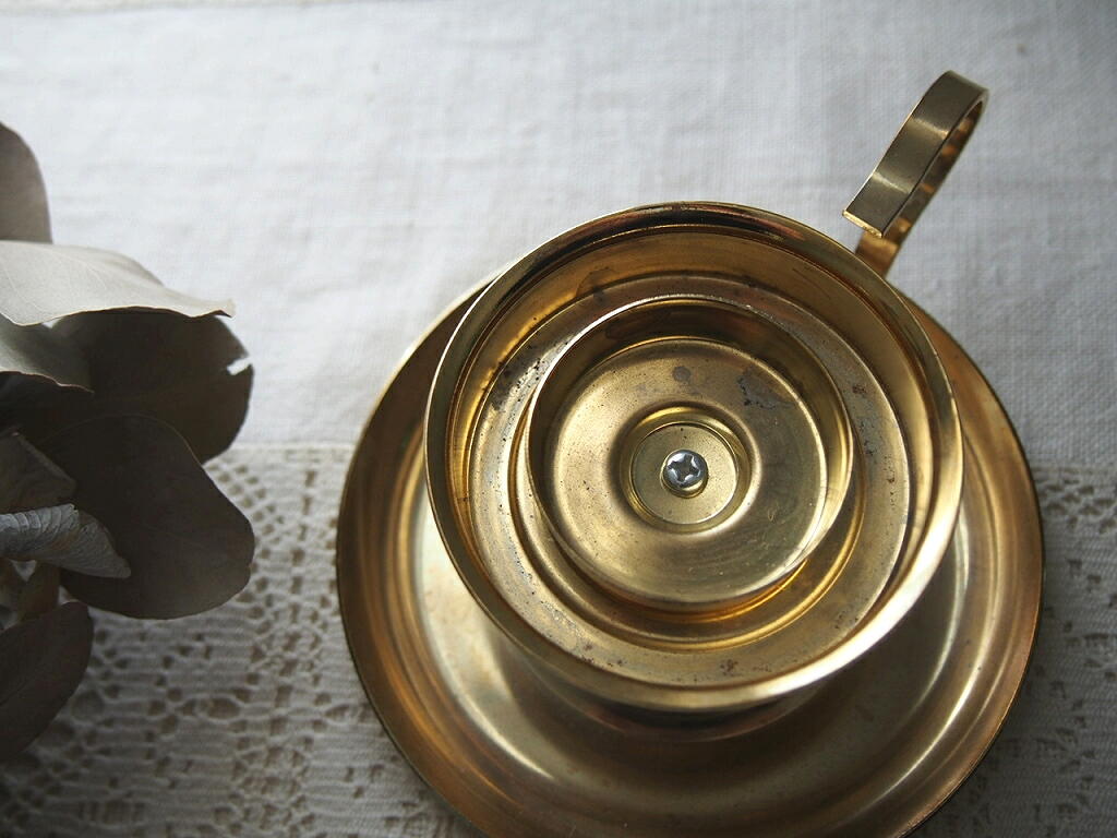 北欧ヴィンテージ雑貨 手吹きガラスと真鍮色のキャンドルホルダー/スウェーデン 1970年代 [IVM251-00904]