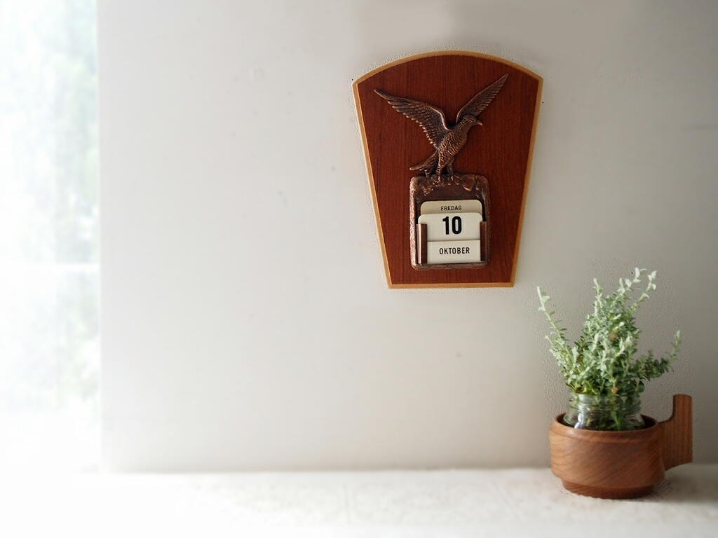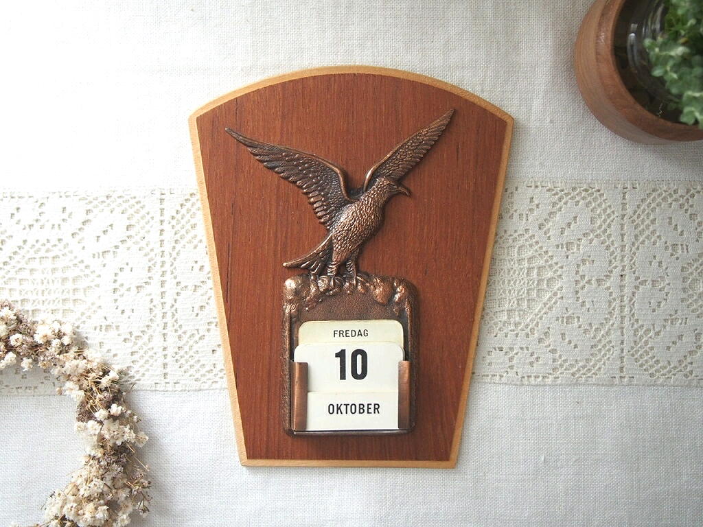 北欧ヴィンテージ スウェーデン チークと銅のカレンダー/鷹の装飾付き/1970年代ヴィンテージ [BVM251-01003]