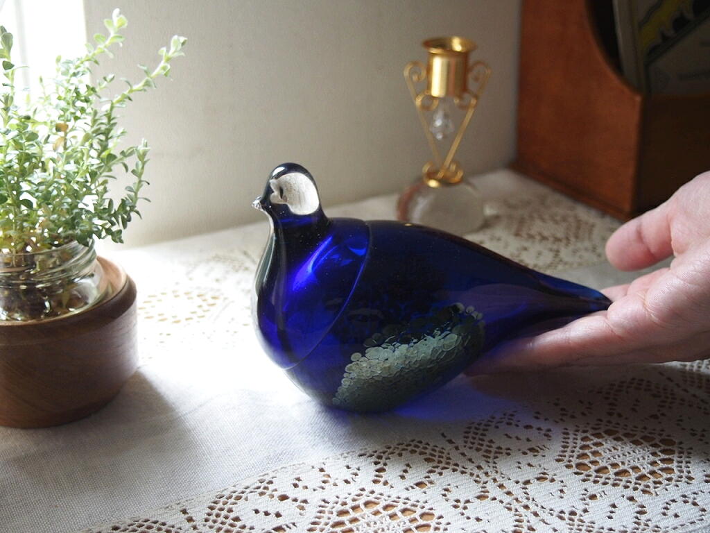 北欧ヴィンテージ 深い青に包まれた ガラスの鳥/スウェーデン/置物 [GVM251-01501]