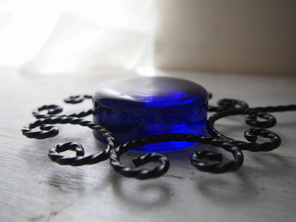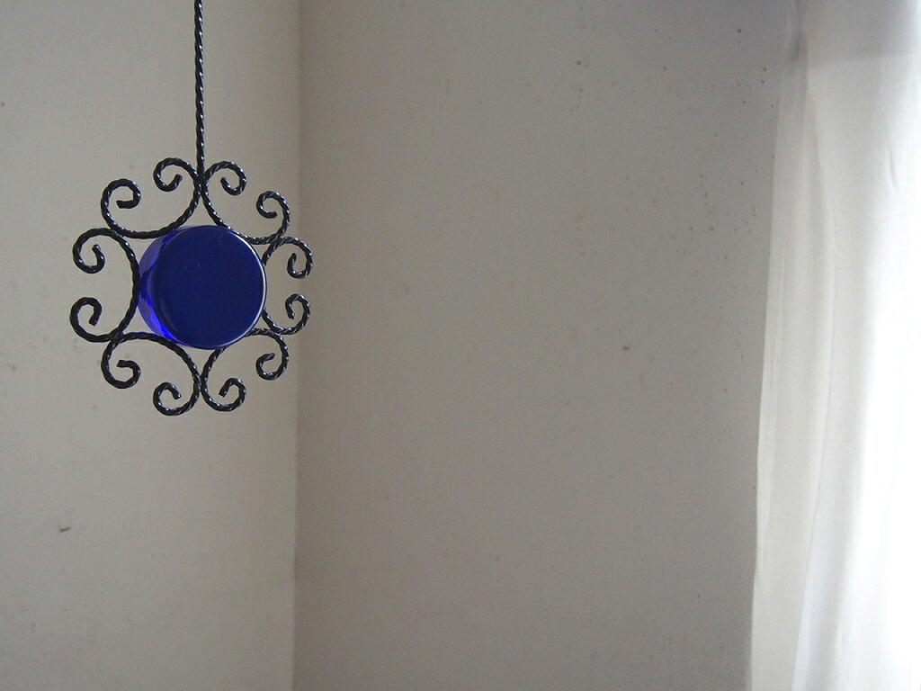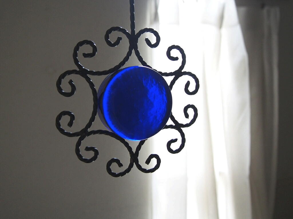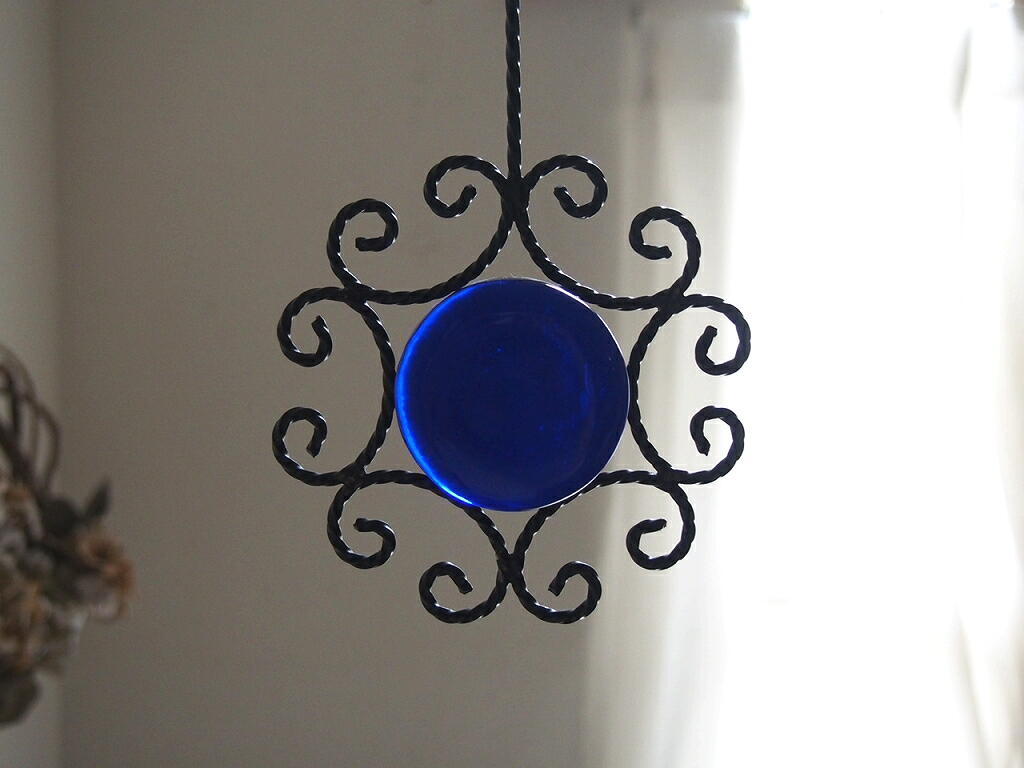 北欧ヴィンテージ スウェーデン ガラスとアイアンのサンキャッチャー/コバルトブルー