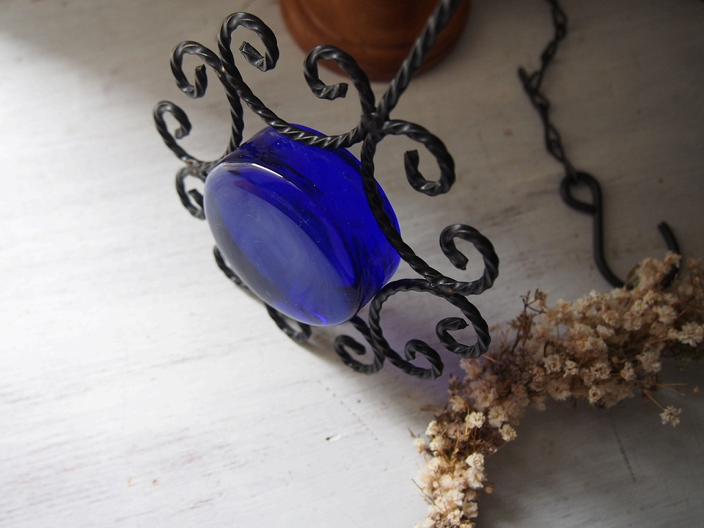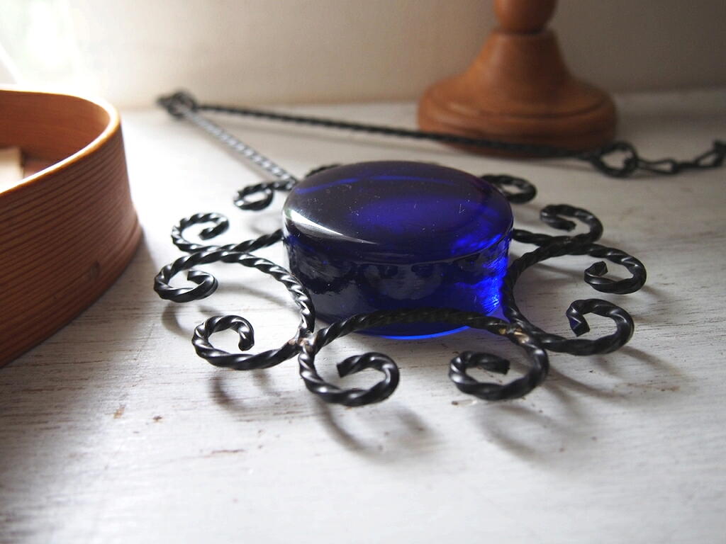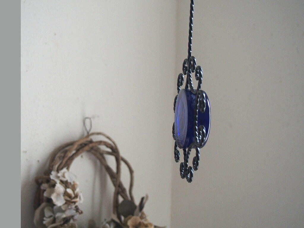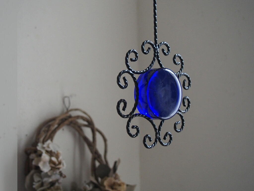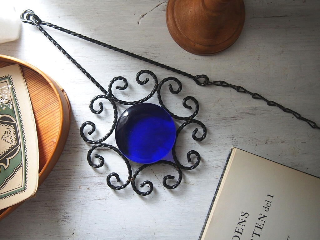 北欧ヴィンテージ スウェーデン ガラスとアイアンのサンキャッチャー/コバルトブルー [IVM251-01504]