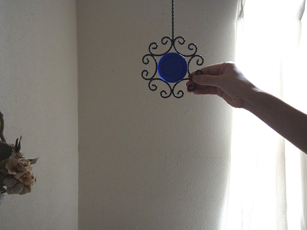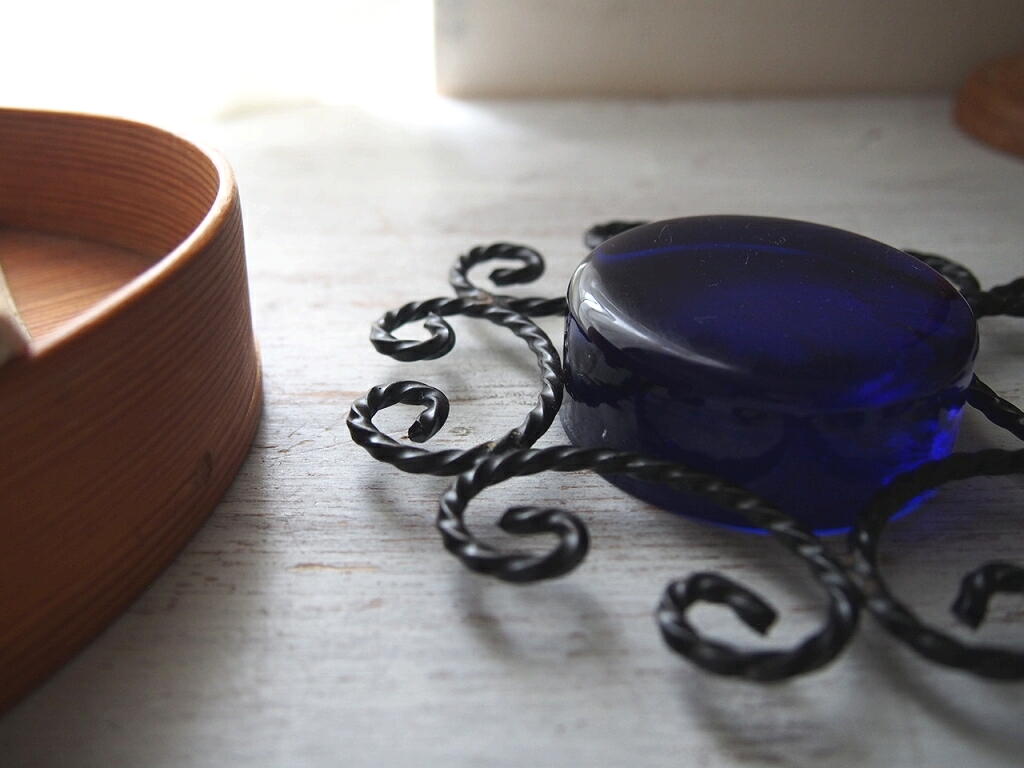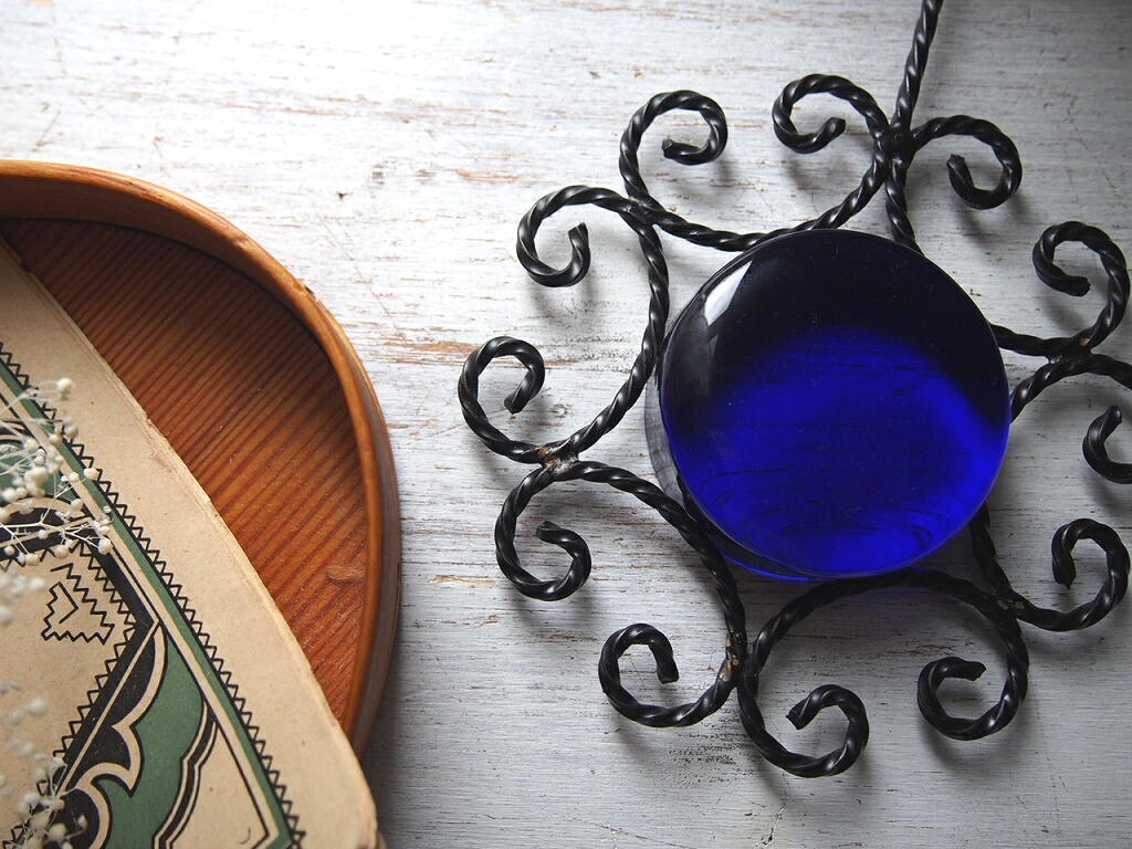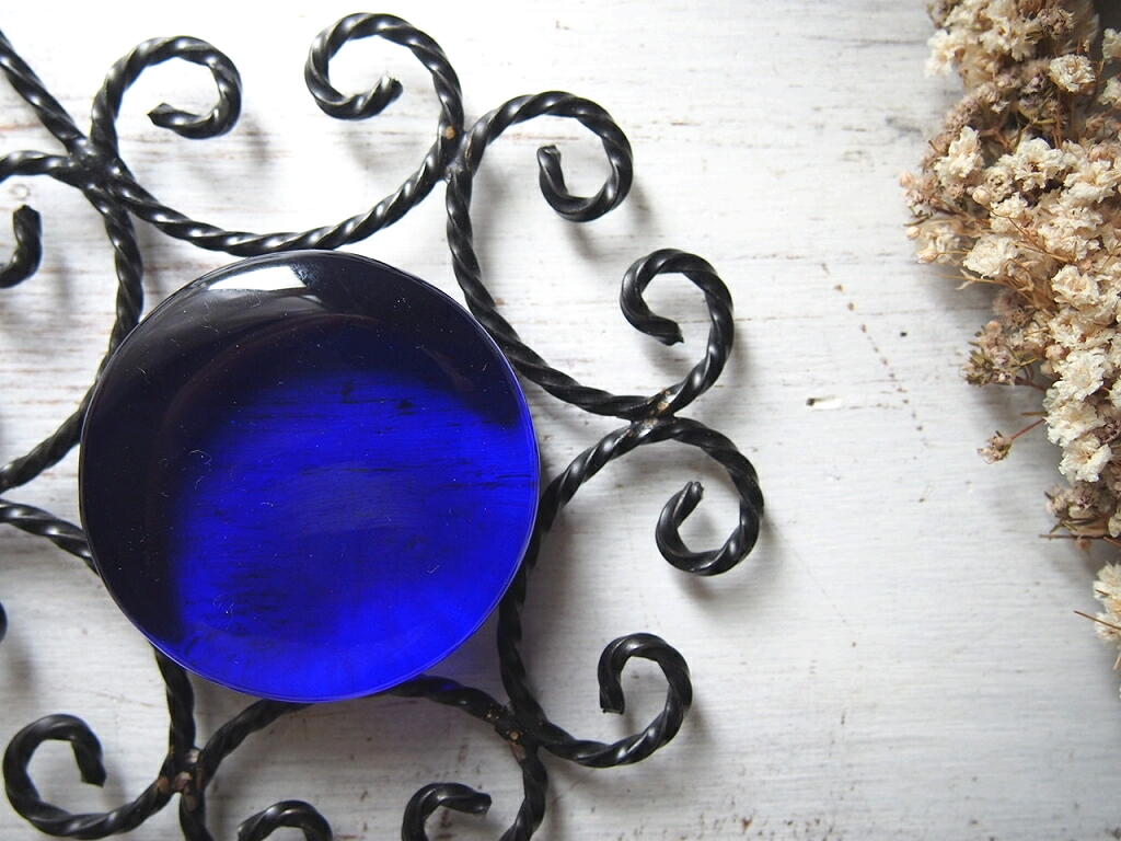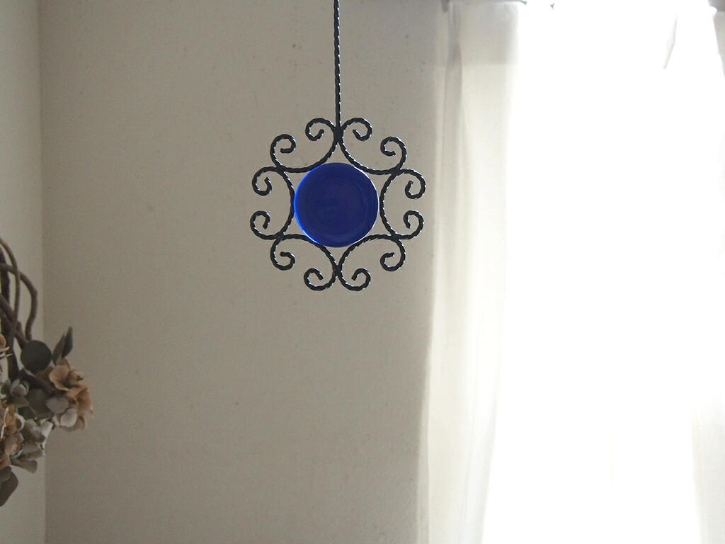 北欧ヴィンテージ スウェーデン ガラスとアイアンのサンキャッチャー/コバルトブルー [IVM251-01504]
