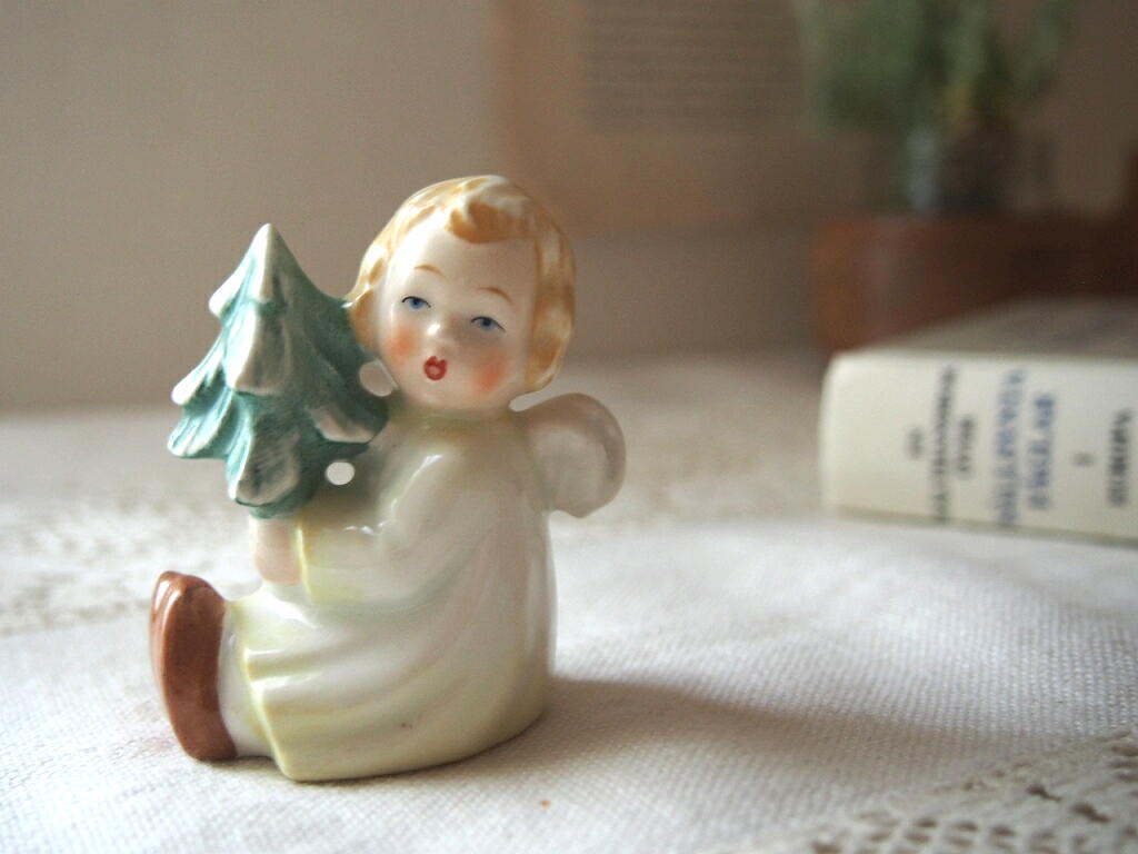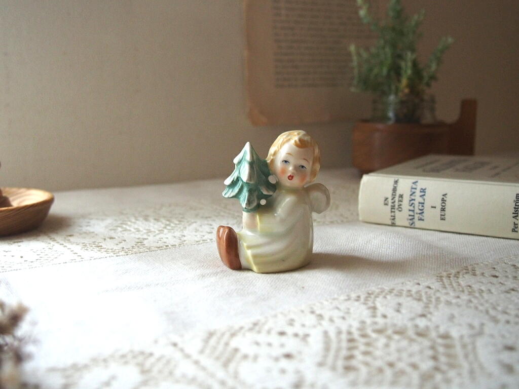 ヴィンテージ Goebel 天使とツリーの磁器フィギュリン/ドイツ 1960年代