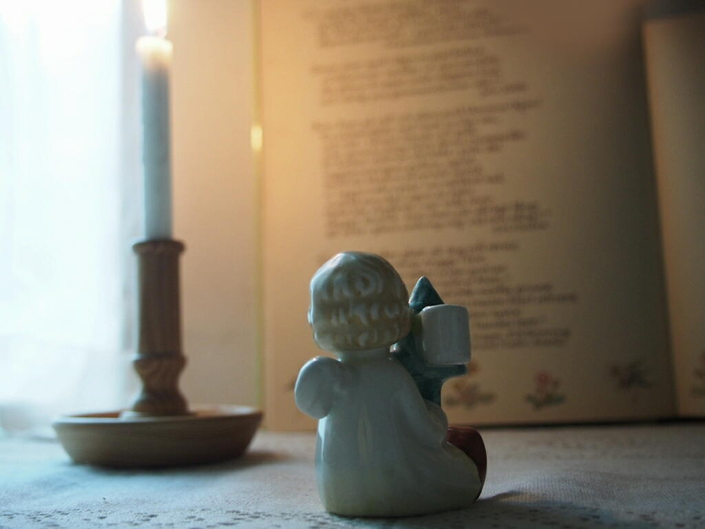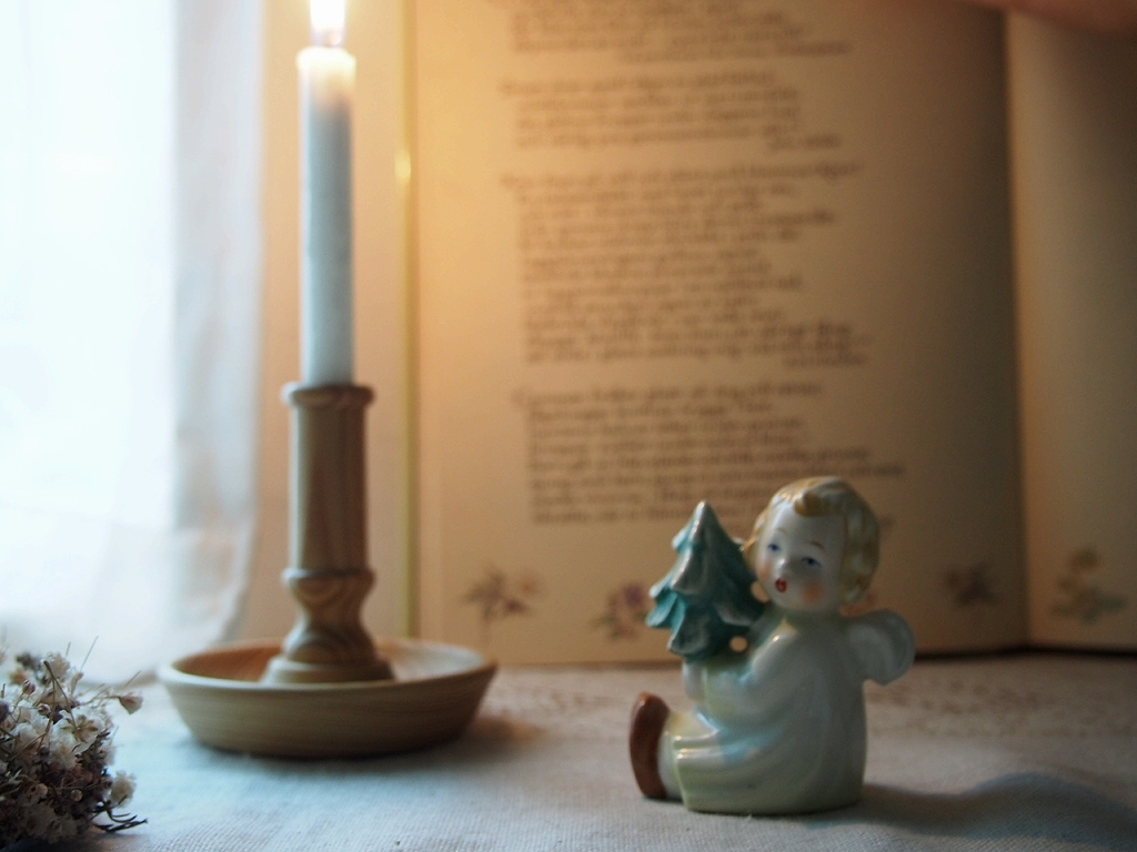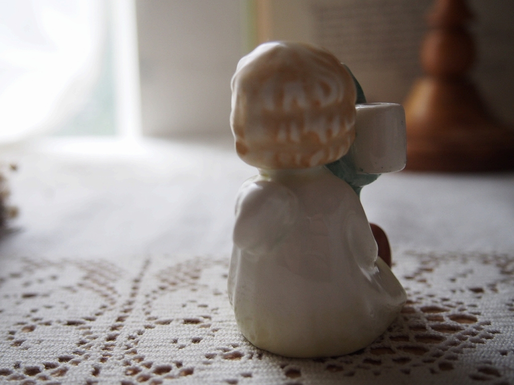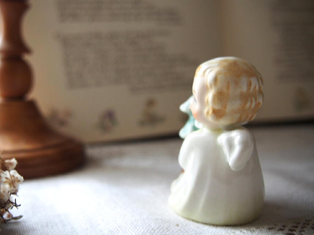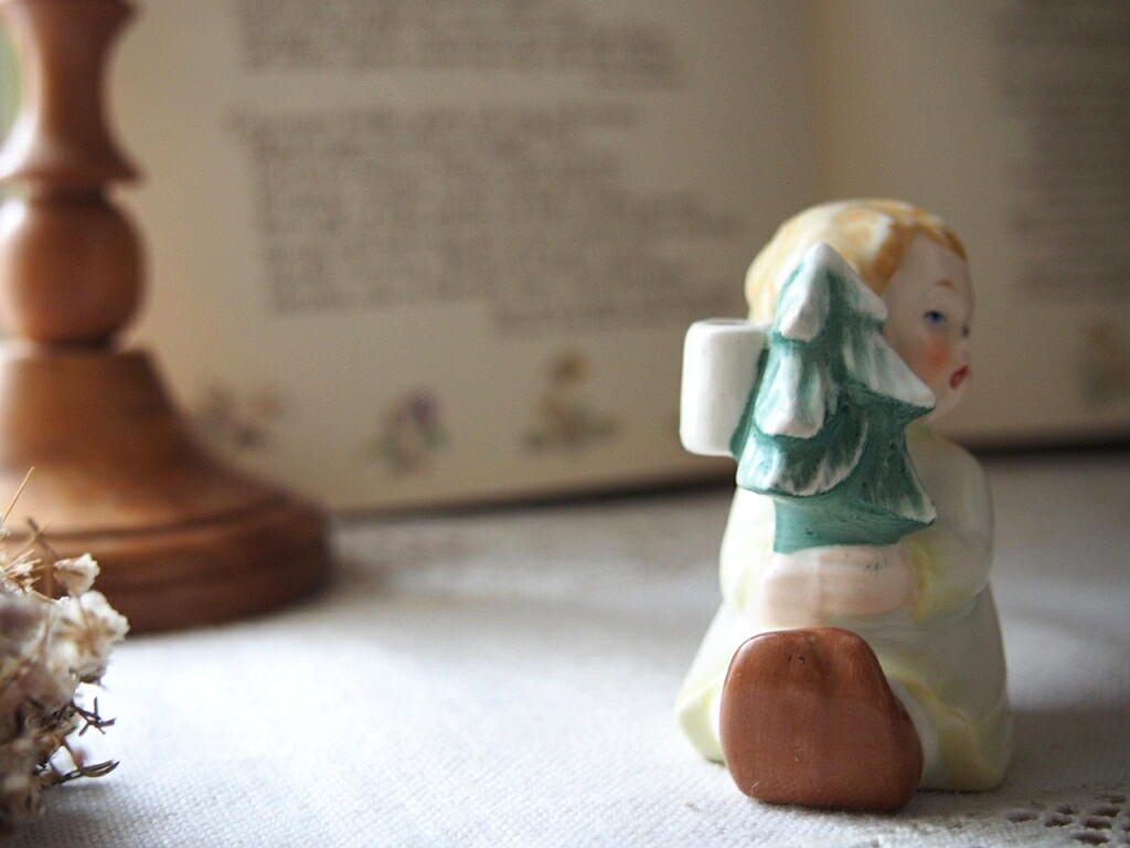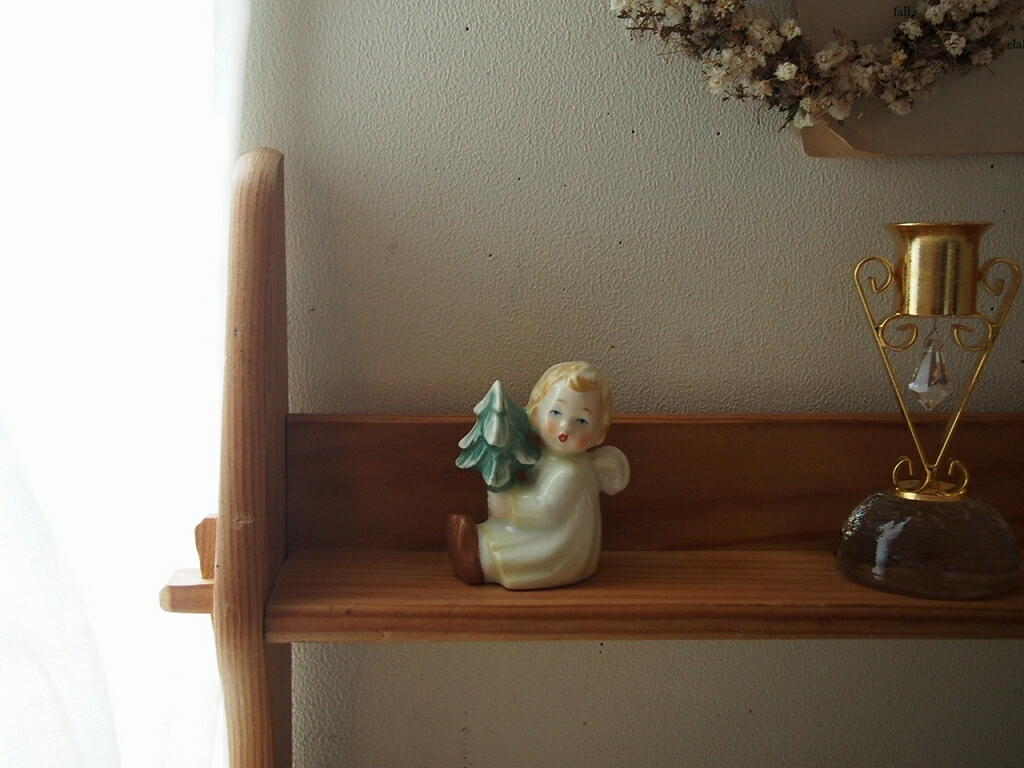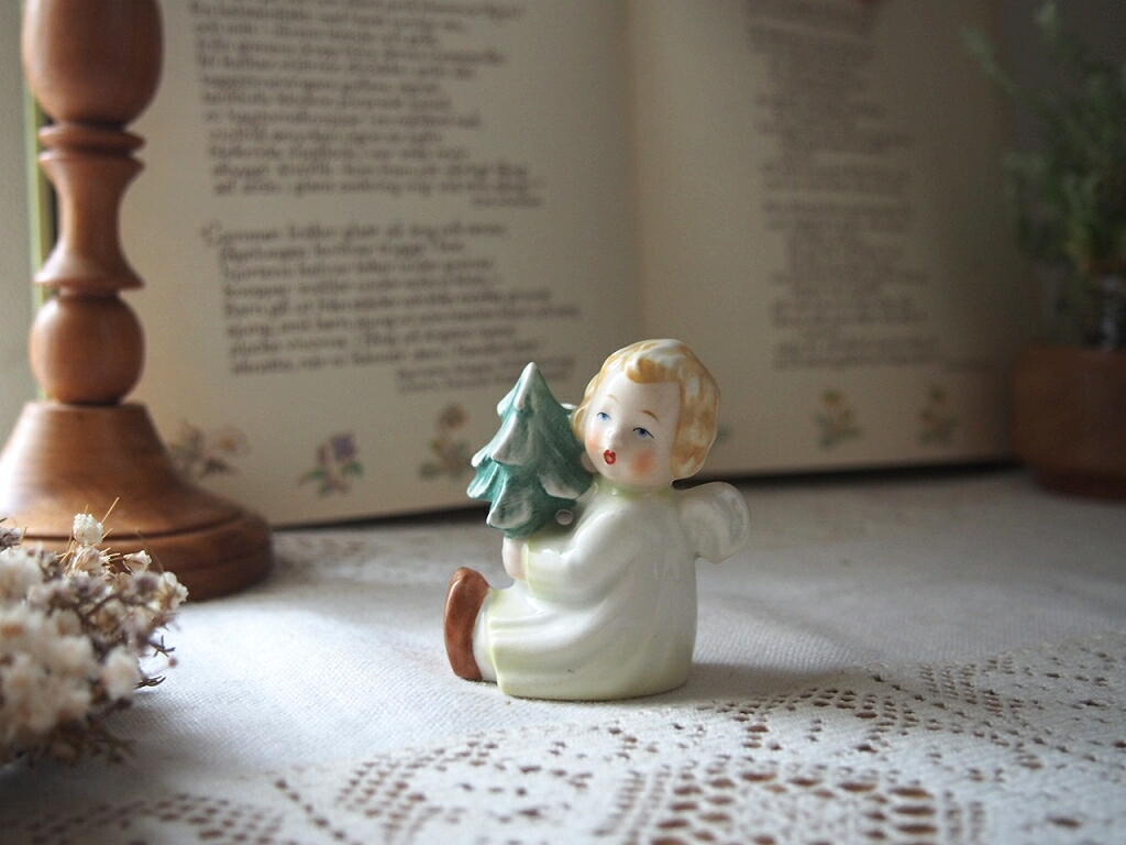 ツリーを抱いた小さな天使の磁器フィギュリ