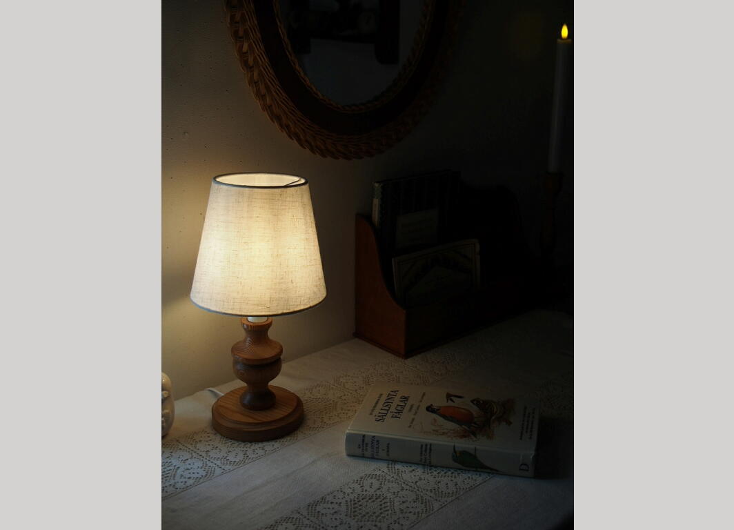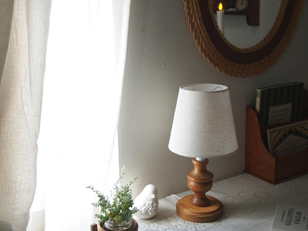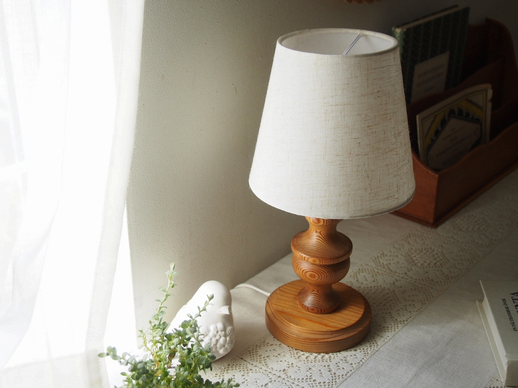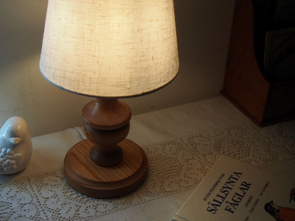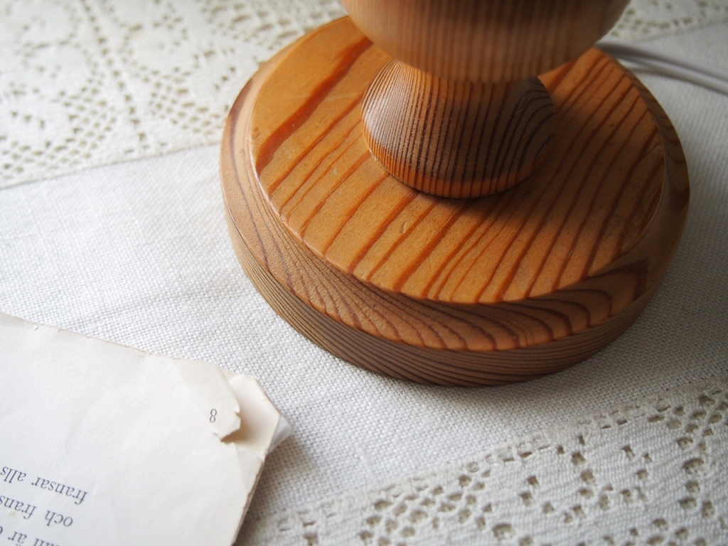 北欧ヴィンテージインテリア スウェーデン 木製テーブルランプ/1970年代/リネンシェードとやさしい灯り