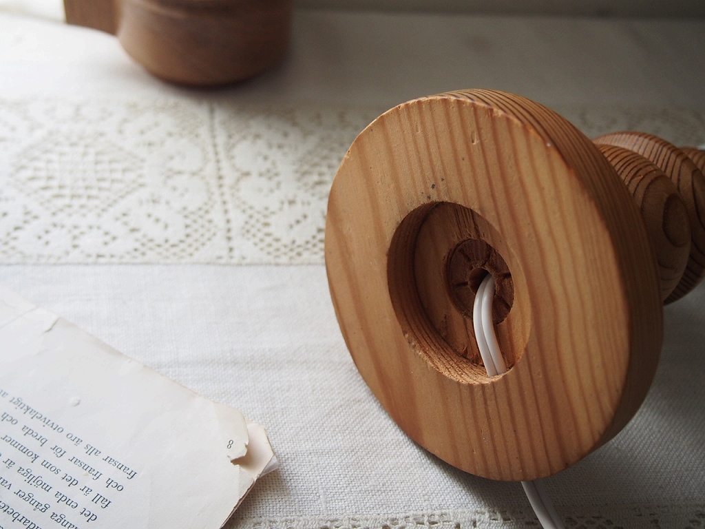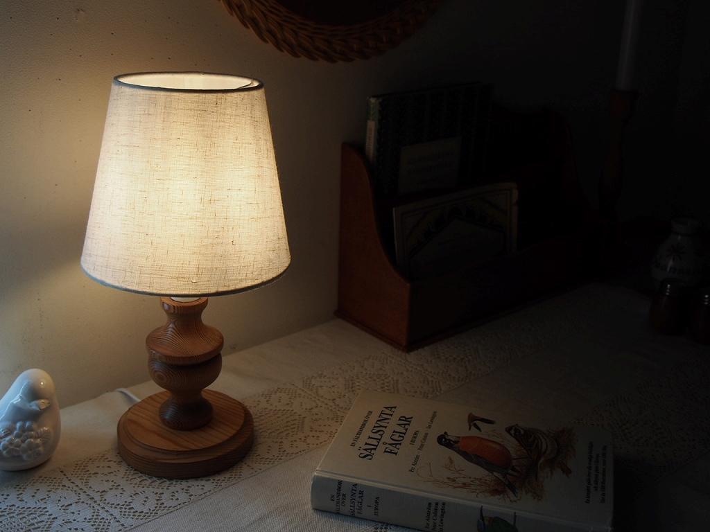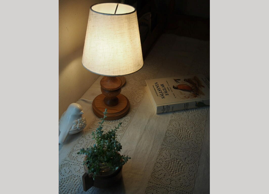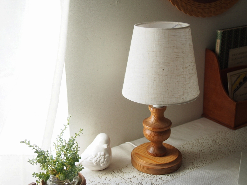 北欧ヴィンテージインテリア スウェーデン 木製テーブルランプ/1970年代/リネンシェードとやさしい灯り