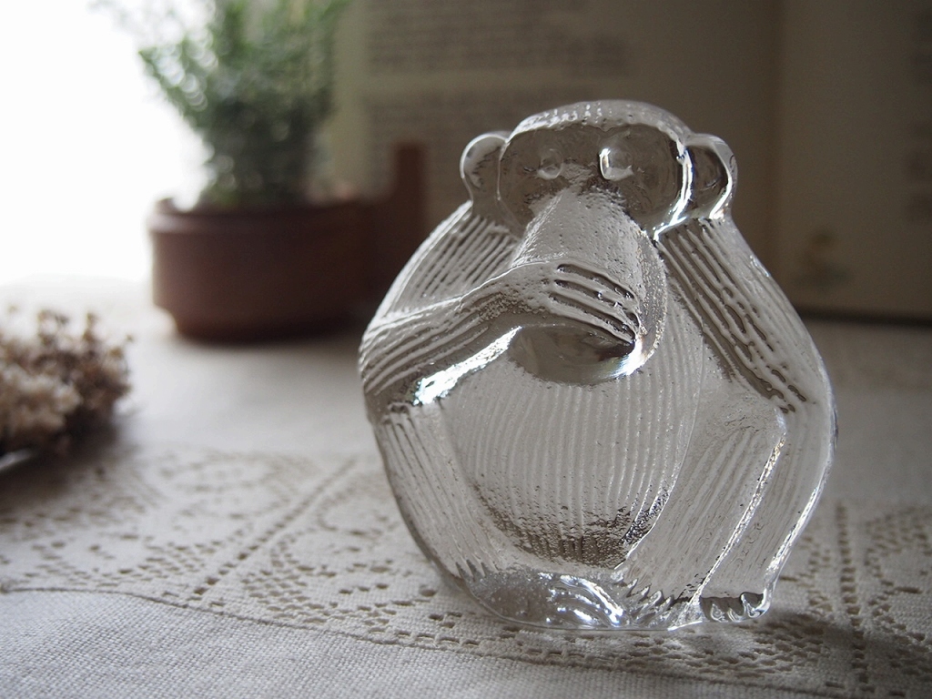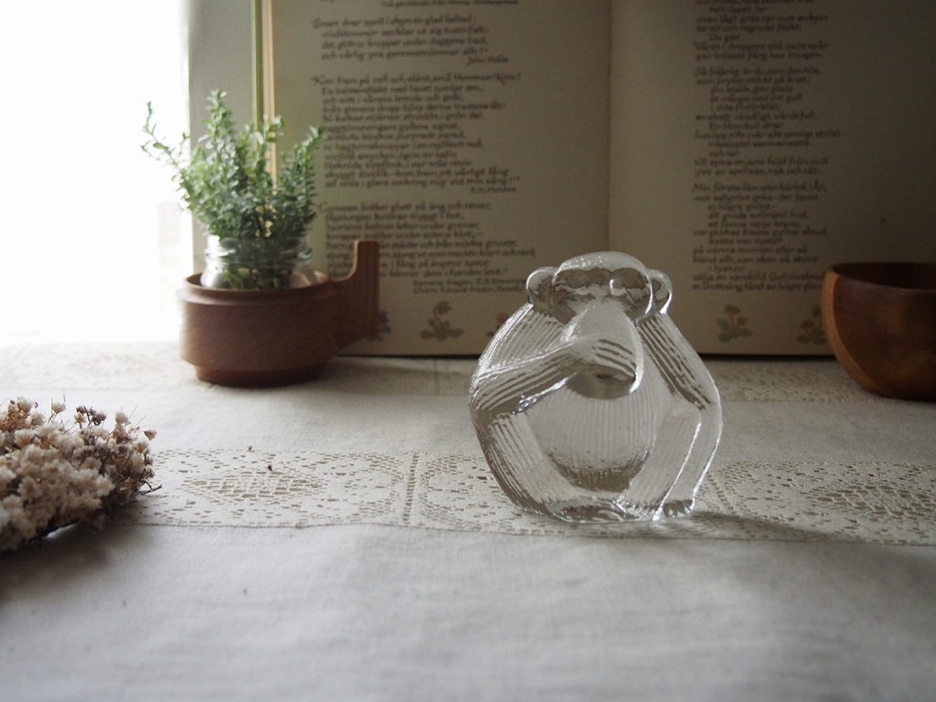 Royal Krona リサ・ラーソン/ガラスオブジェ “言わざる”/スウェーデンヴィンテージ [GVM251-02401]