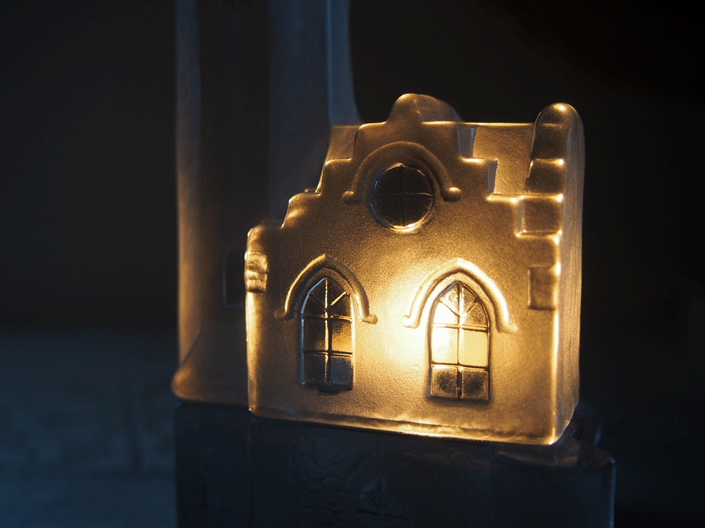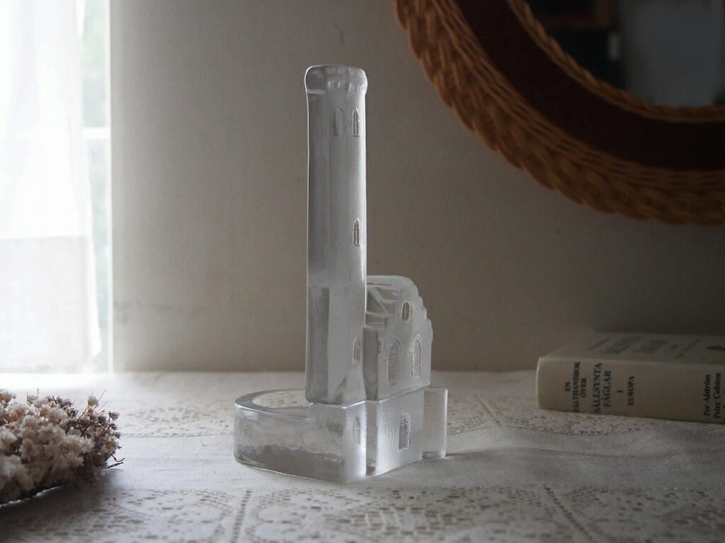 Nybro Glasbruk 教会モチーフのキャンドルホルダー/クリスタルガラス/Staffan Brattstrom/スウェーデン 1980年代
