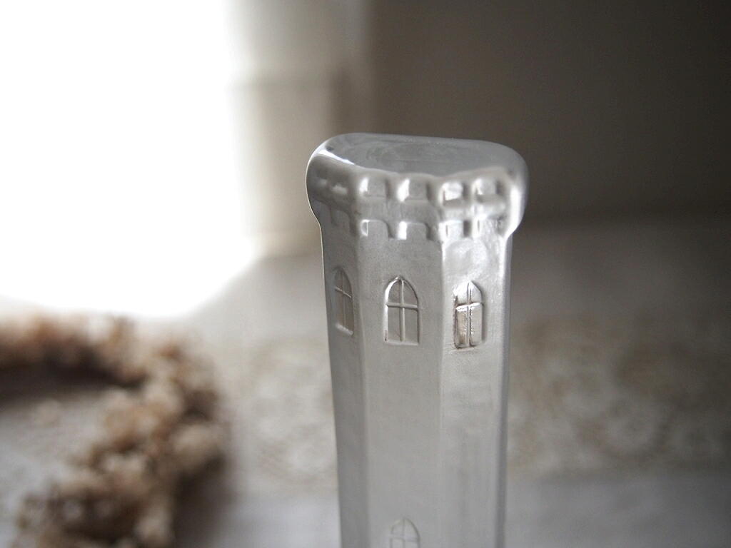 体は、繊細な窓や塔の造形が丁寧に彫り込ま