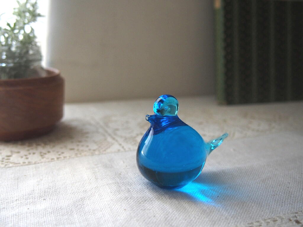 スウェーデン製 ガラスの青い小鳥/北欧ヴィンテージオブジェ/ブルーガラス・インテリア雑貨