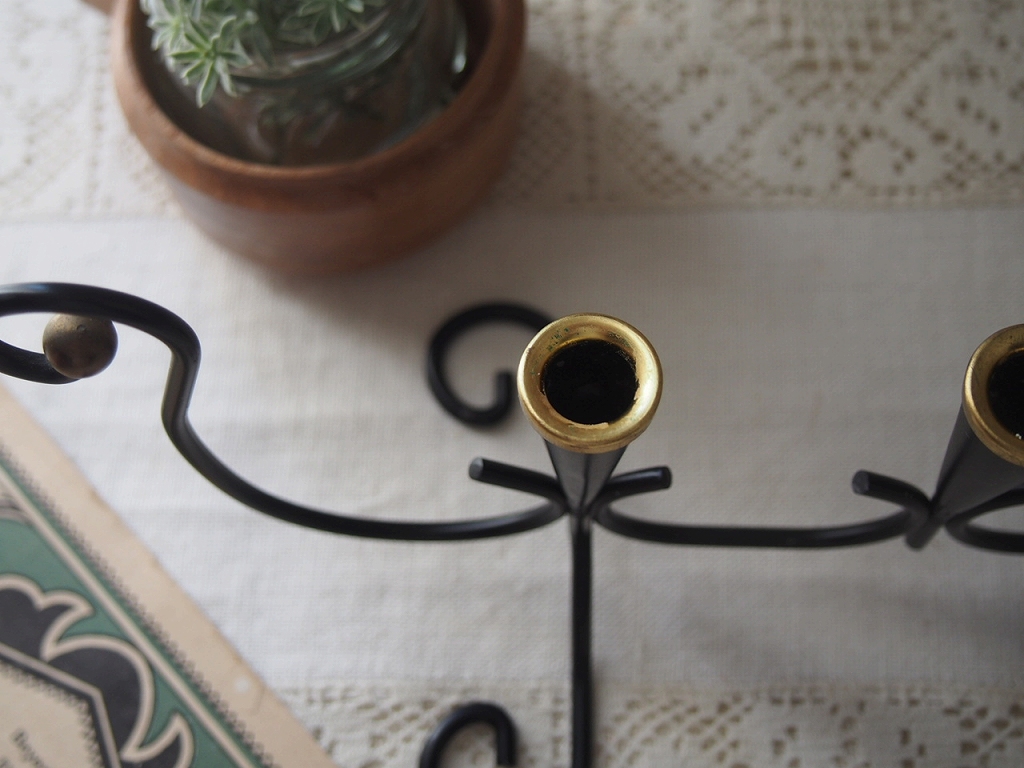 スウェーデン製 真鍮とアイアンのキャンドルホルダー/北欧ヴィンテージ照明/1950–60年代