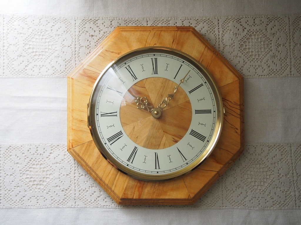 ドイツ製 木製ウォールクロック/真鍮フレーム付き/1960年代/ヴィンテージ時計