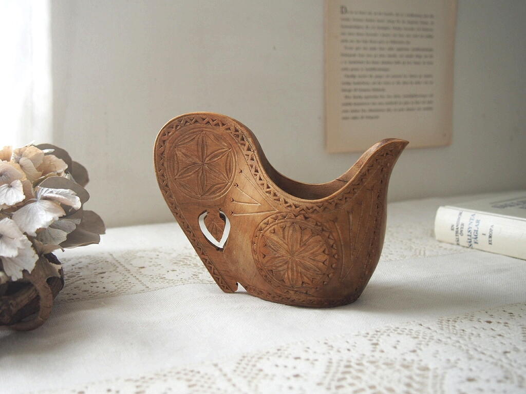 木製コーサ/雪の結晶モチーフの手彫り装飾/北欧ヴィンテージ・ハンドクラフトの木の器 [AVM251-11501]