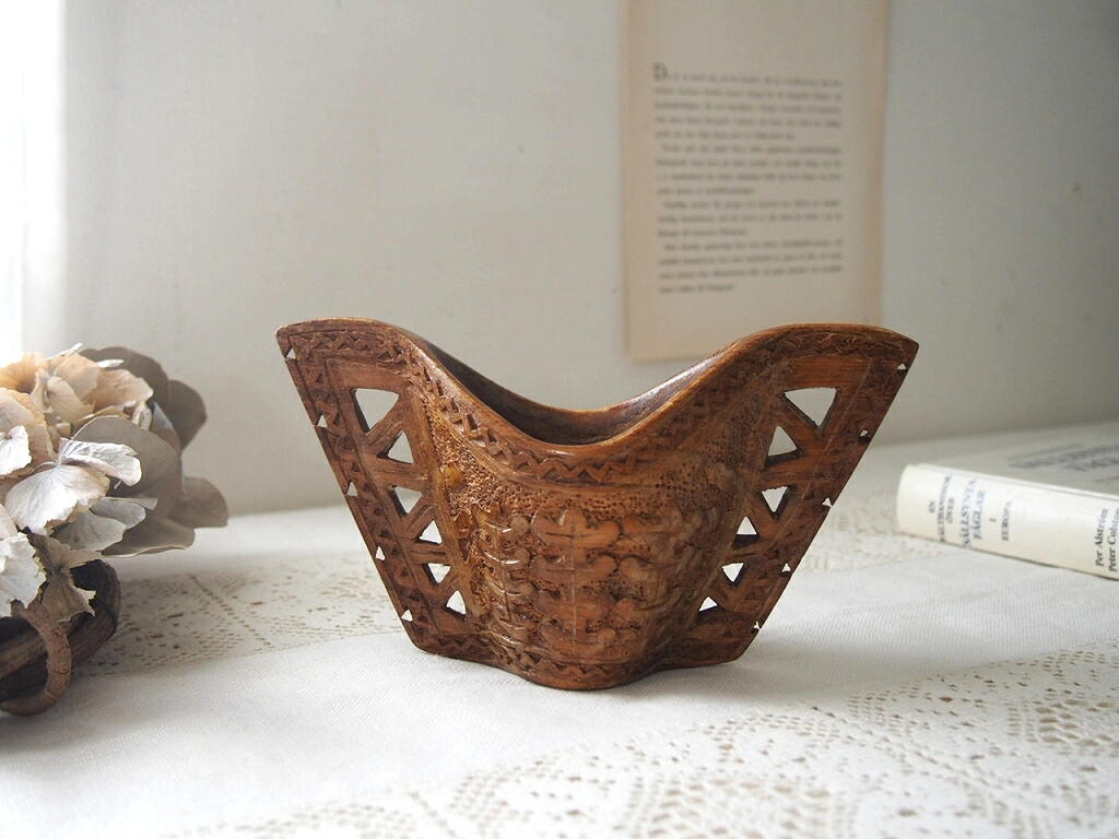 木製コーサ/北欧ヴィンテージ/手彫り装飾・幾何学模様/ハンドクラフトの木の器 [AVM251-11502]