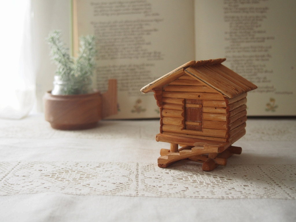 スウェーデン 木製ミニハウス/ログハウスモチーフ/手仕事の北欧インテリア
