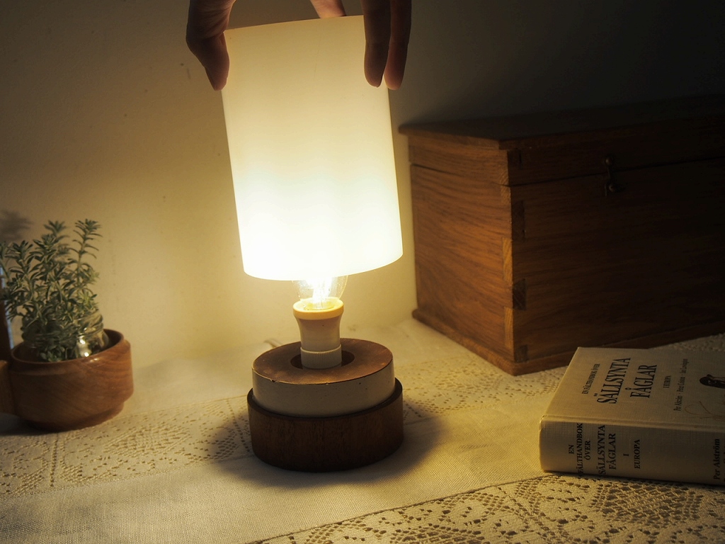 スウェーデン製 樹脂シェードのテーブルランプ/チーク無垢材ベース/北欧ヴィンテージ