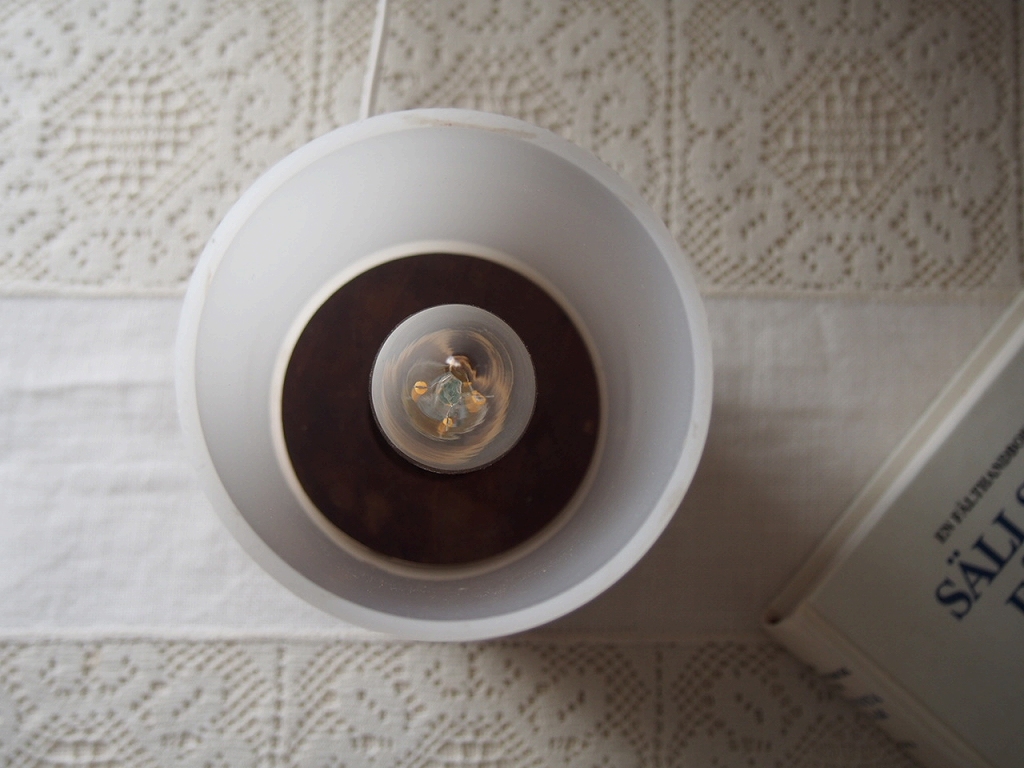 やわらかい白色の樹脂シェードと、チーク