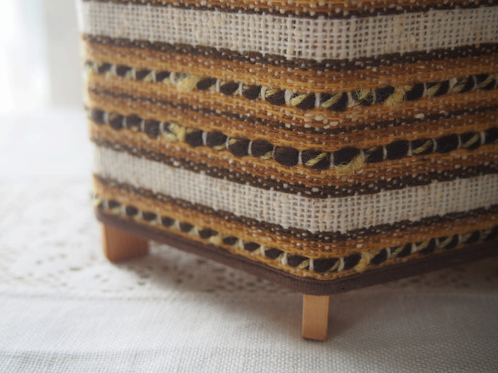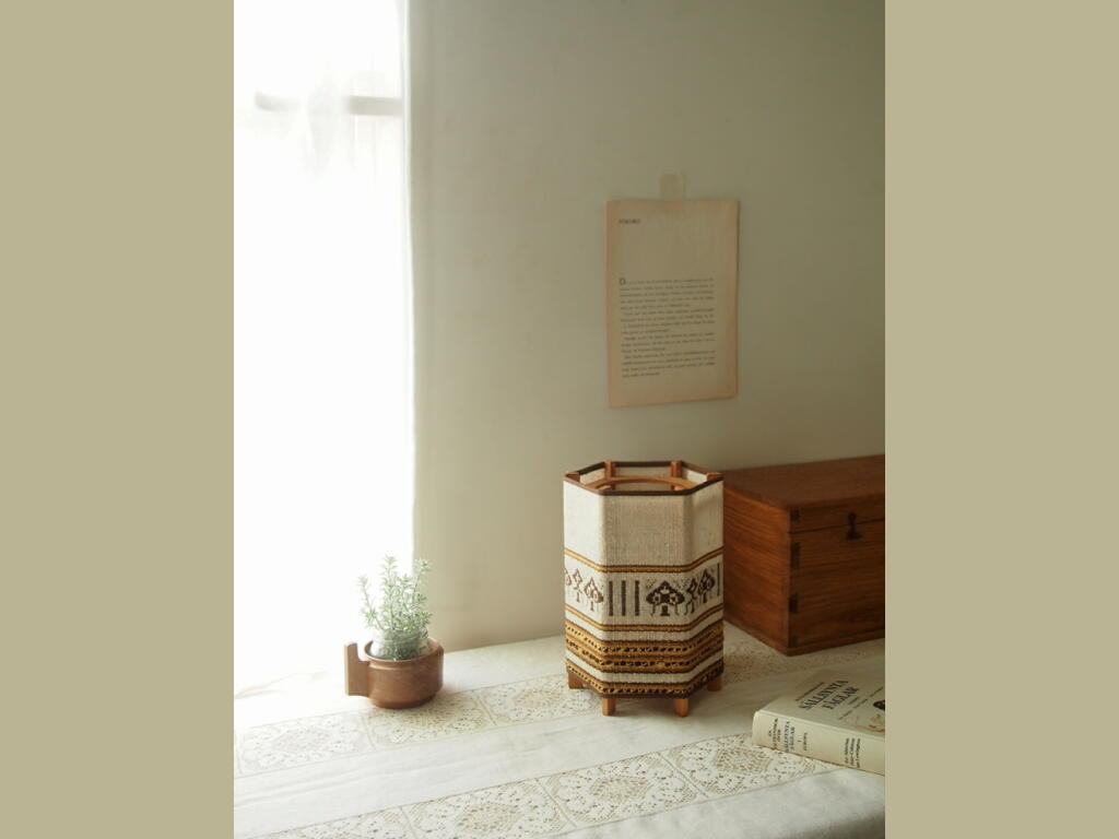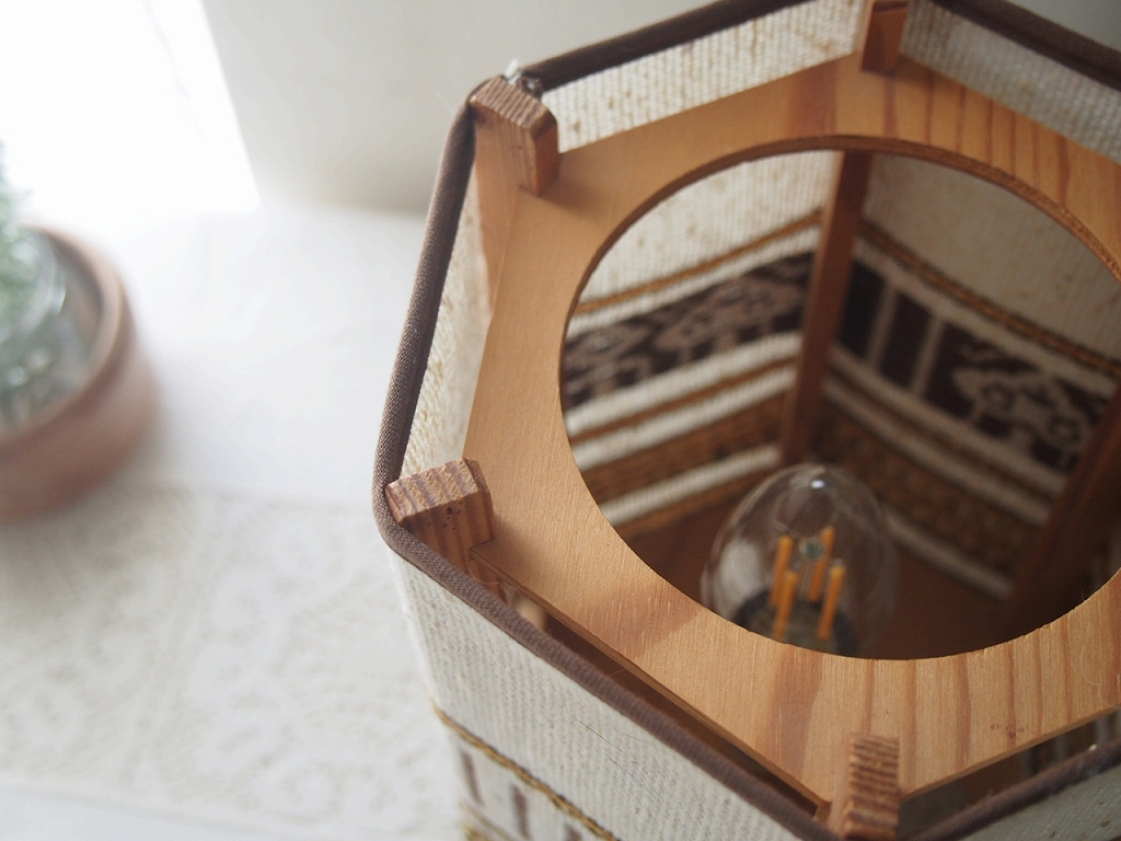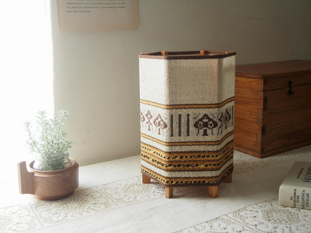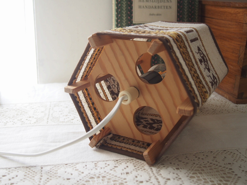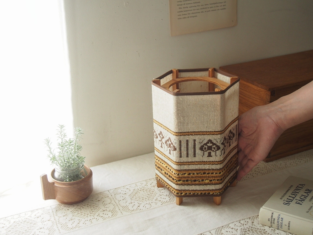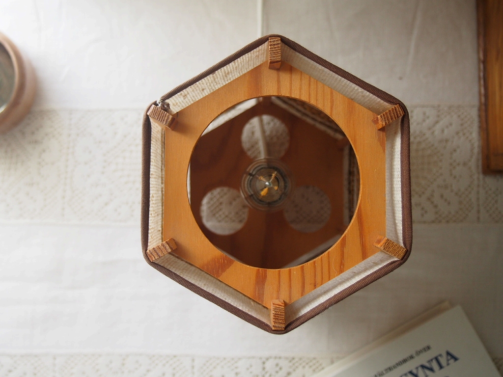 北欧ヴィンテージ照明/スウェーデン製 テーブルランプ/リネン刺しゅうシェードと木製ベース/六角形フォルム