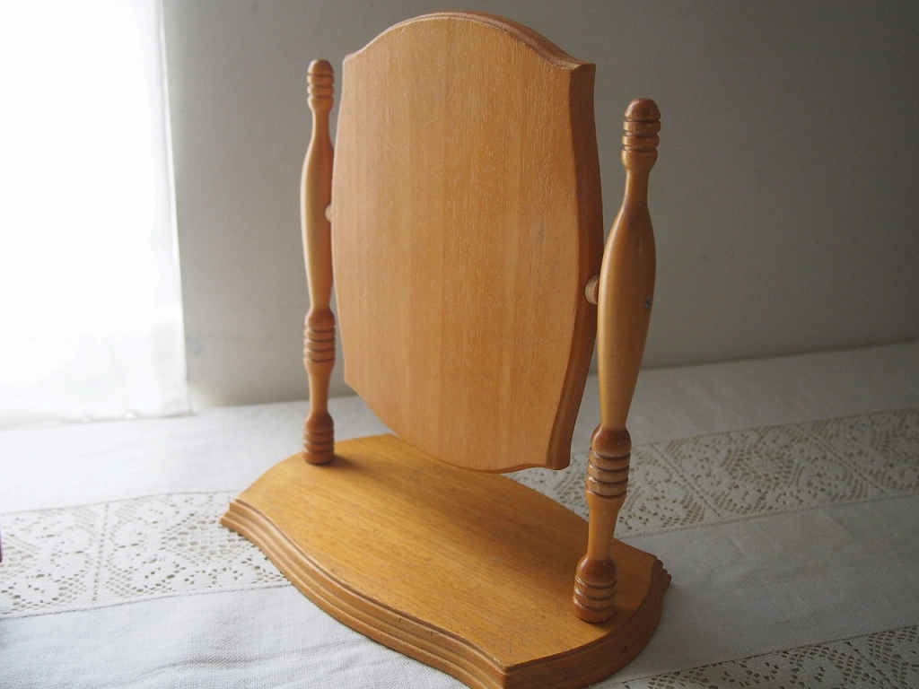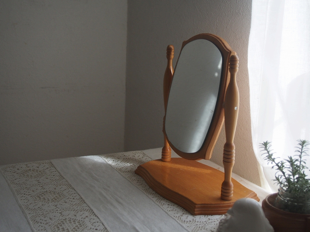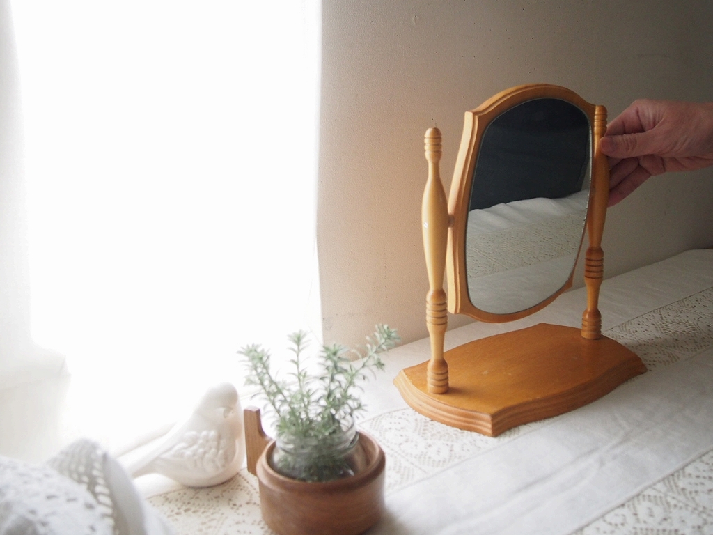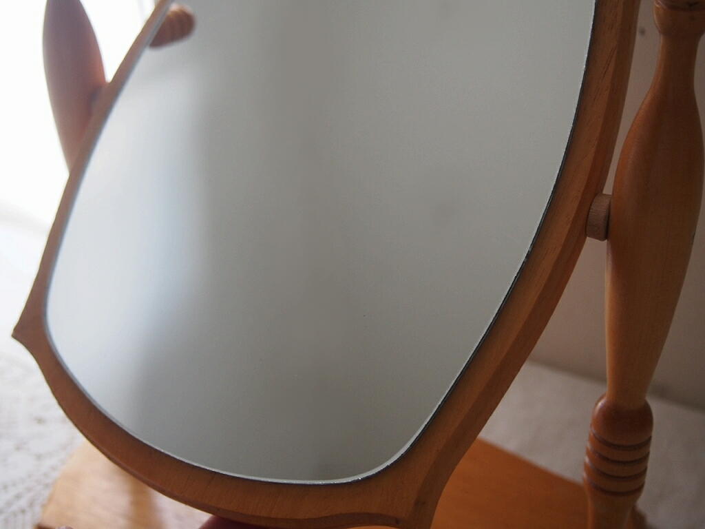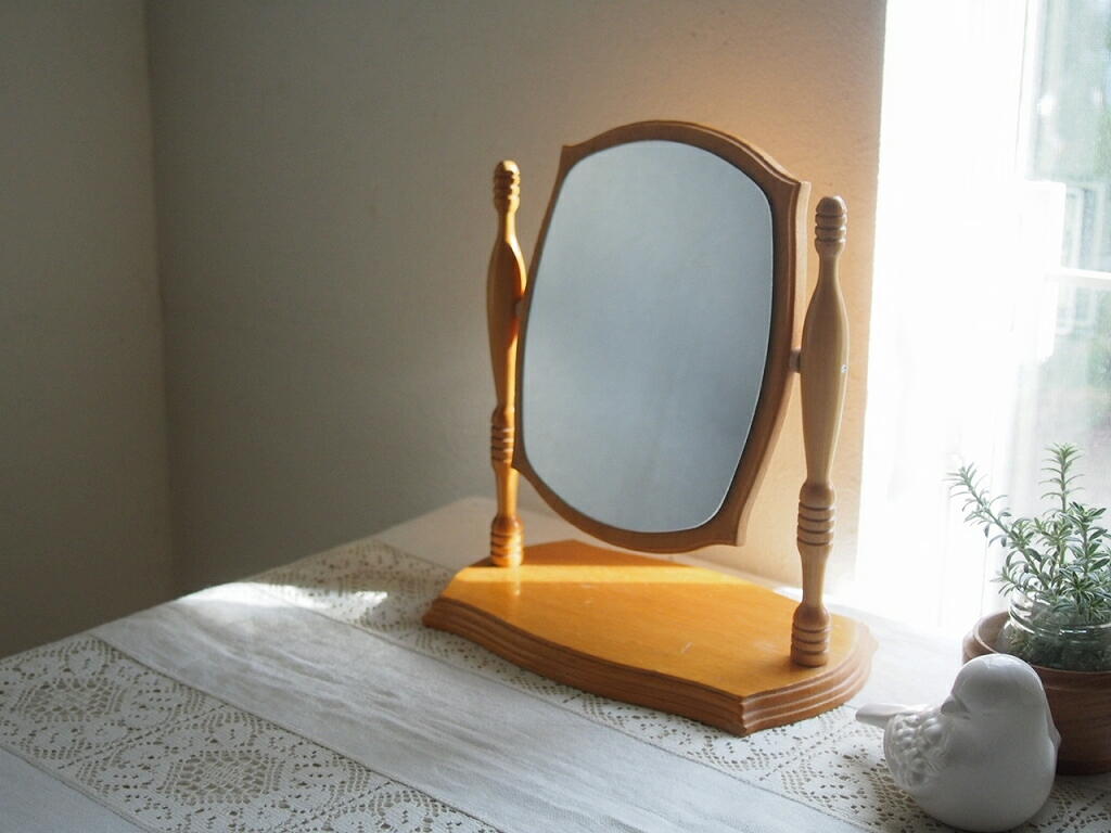 スウェーデン製 木製テーブルミラー/無垢材フレーム/1970年代/北欧ヴィンテージ鏡
