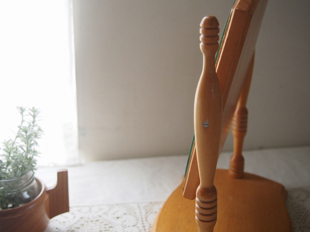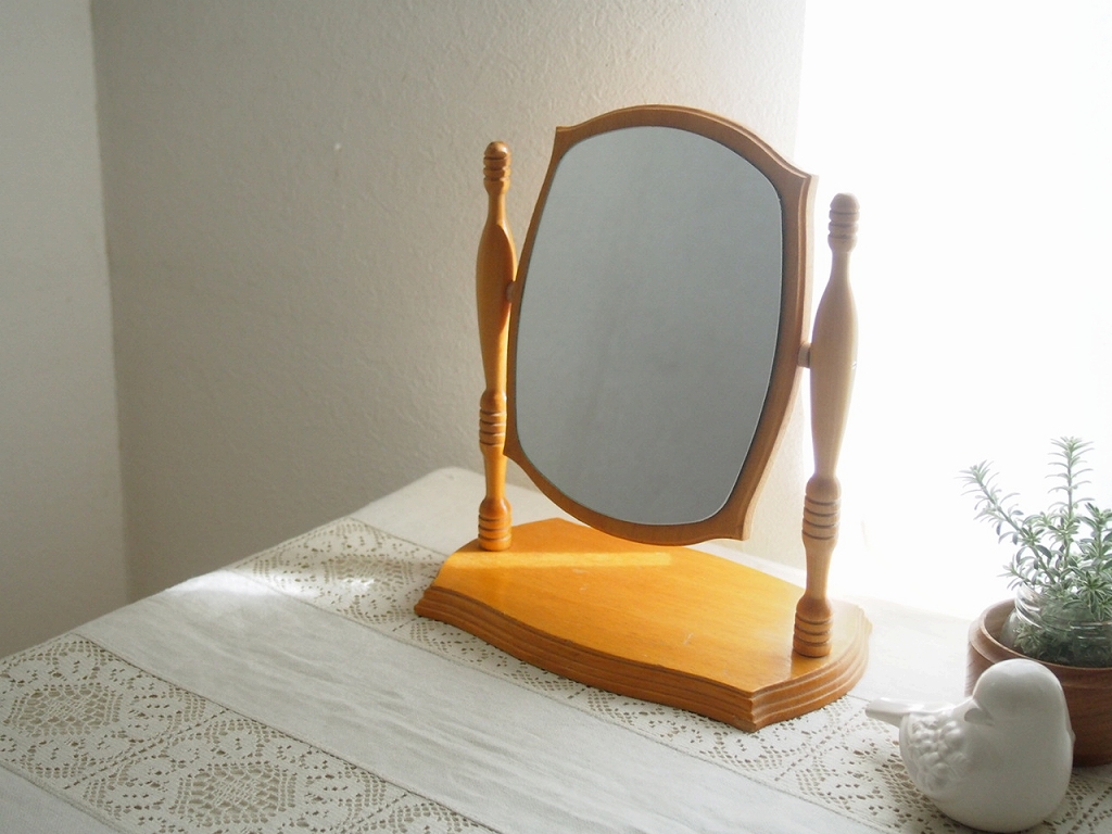 スウェーデン製 木製テーブルミラー/無垢材フレーム/1970年代/北欧ヴィンテージ鏡 [FVM251-11905]