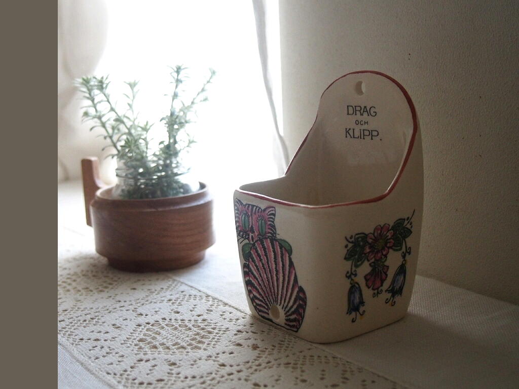 本来はひもを収納するための陶器ですが、小物