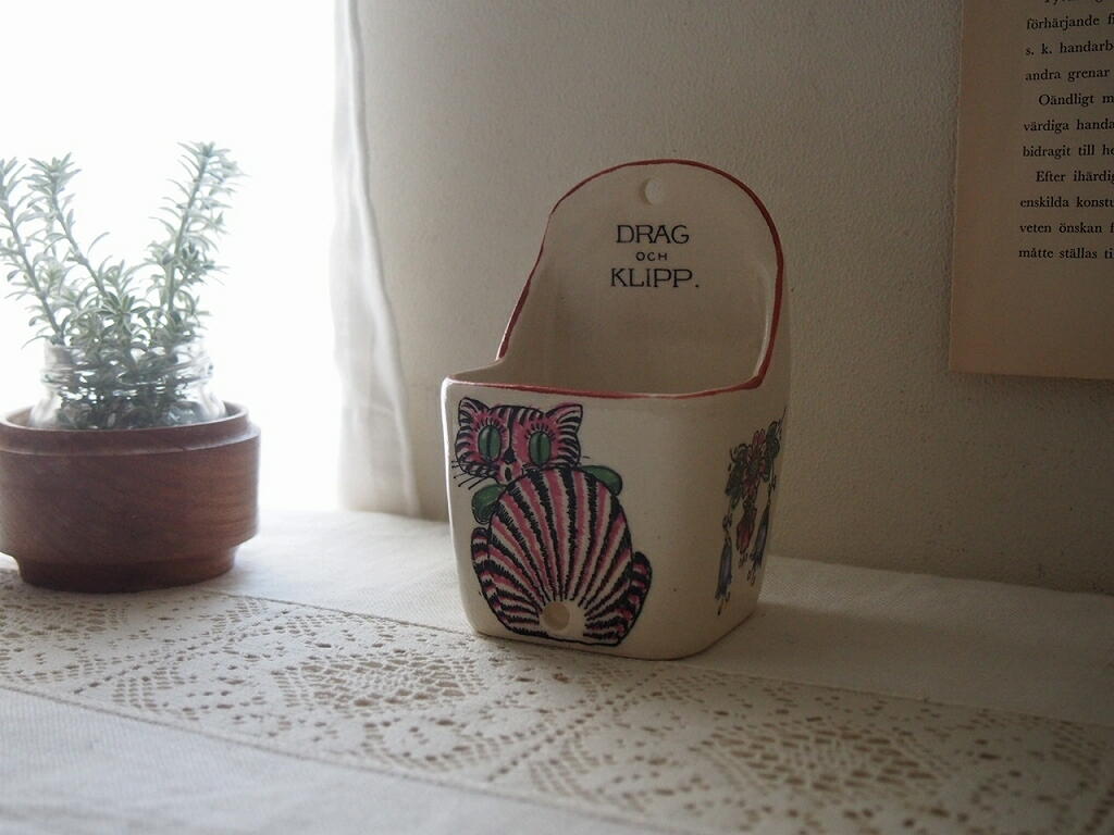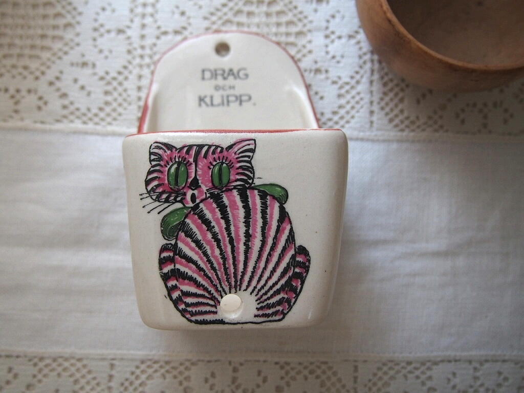 デンマーク製 陶器のねこモチーフ小物入れ/紐ホルダーにもなる置物/北欧ヴィンテージ