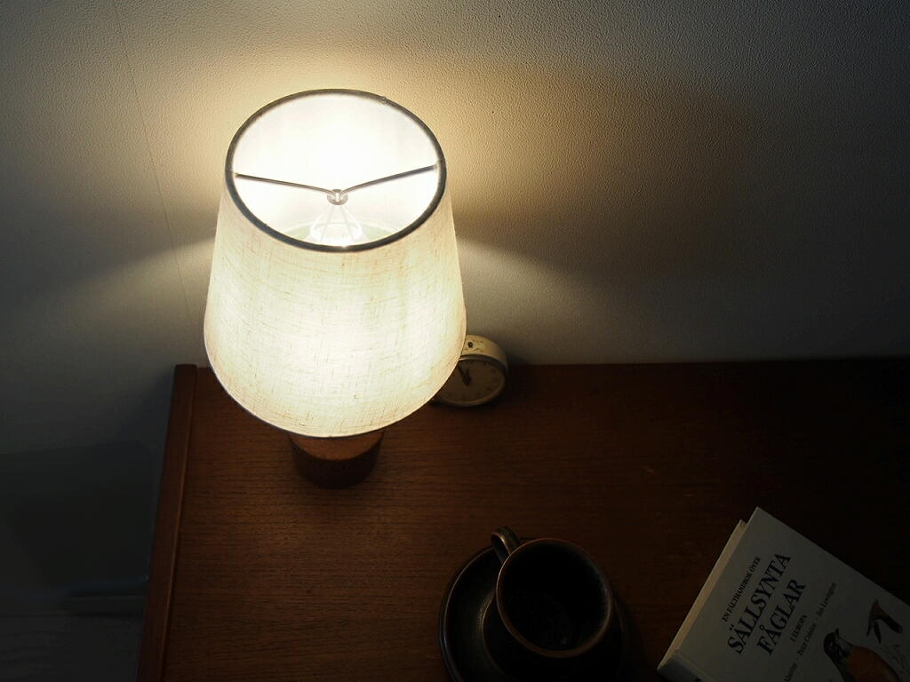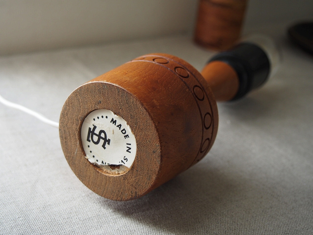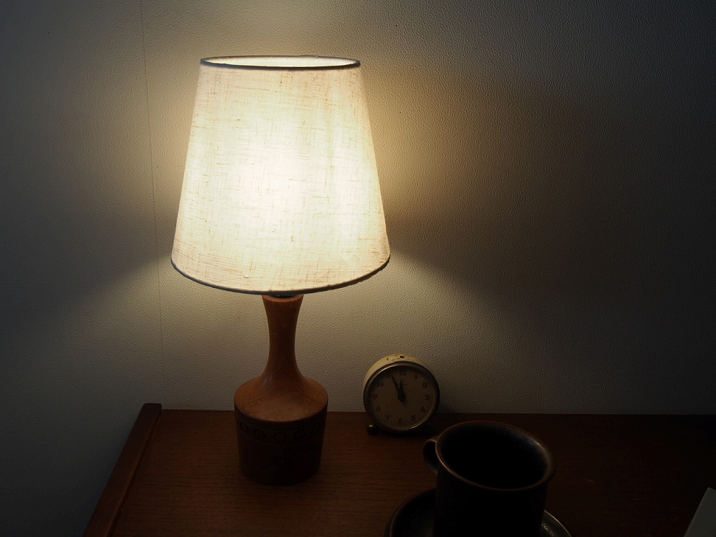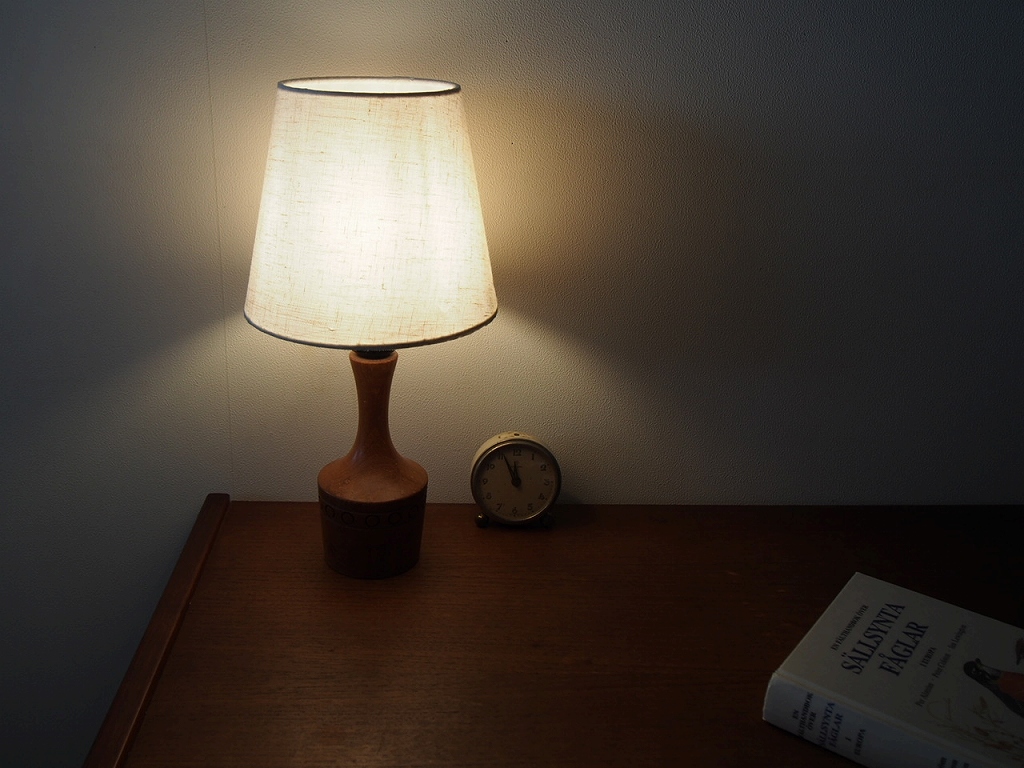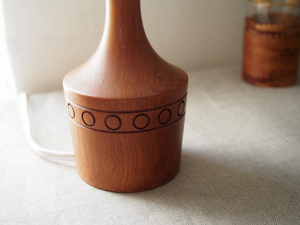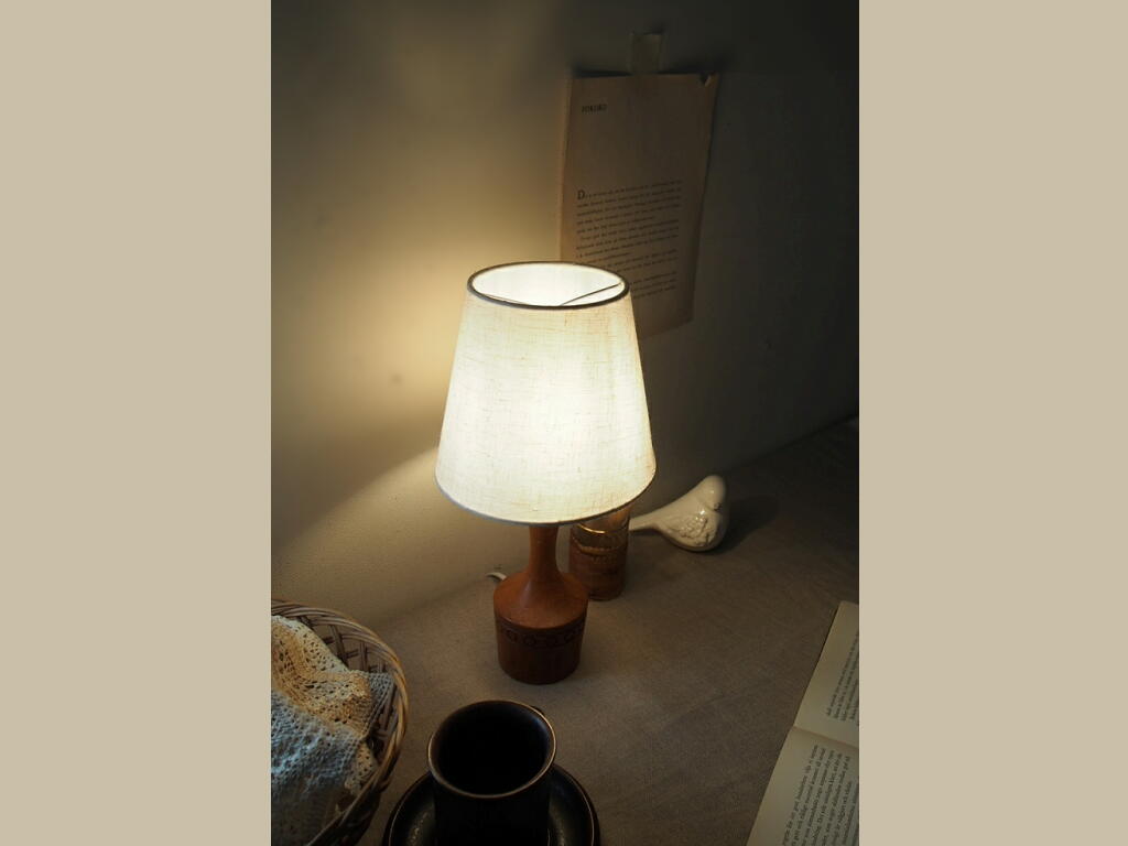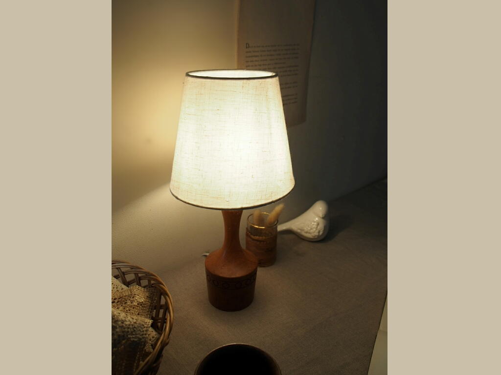 スウェーデン製 チーク無垢材 テーブルランプ/リネンシェード付き/1960–70年代/北欧ヴィンテージ照明 [LVM251-12605]