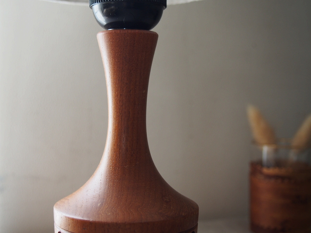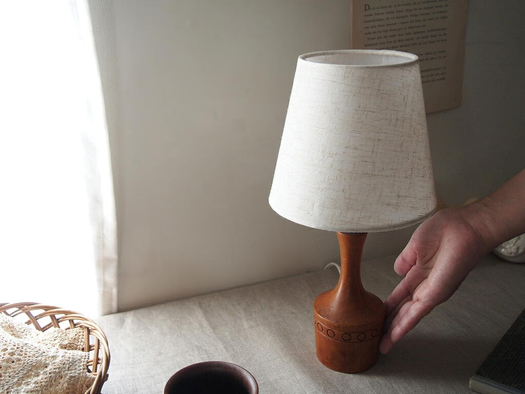 スウェーデン製 チーク無垢材 テーブルランプ/リネンシェード付き/1960–70年代/北欧ヴィンテージ照明