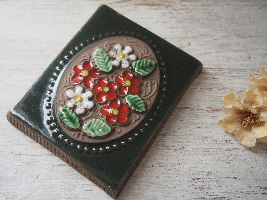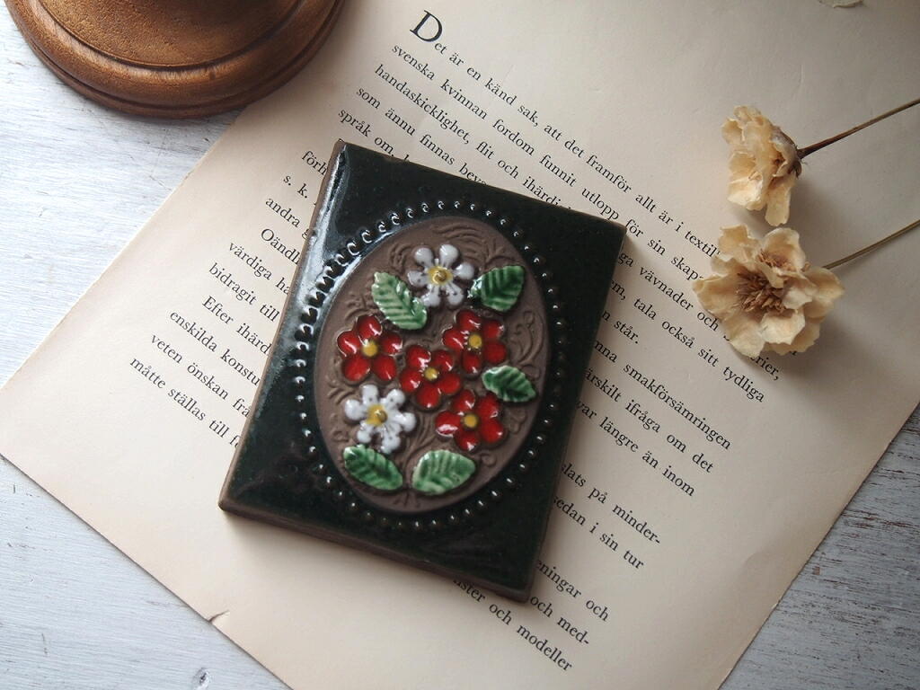Jie Gantofta 陶板/Aimo Nietosvuori/スウェーデン製ヴィンテージ/花モチーフ/壁掛けインテリア/箱付き [TVM251-12601]