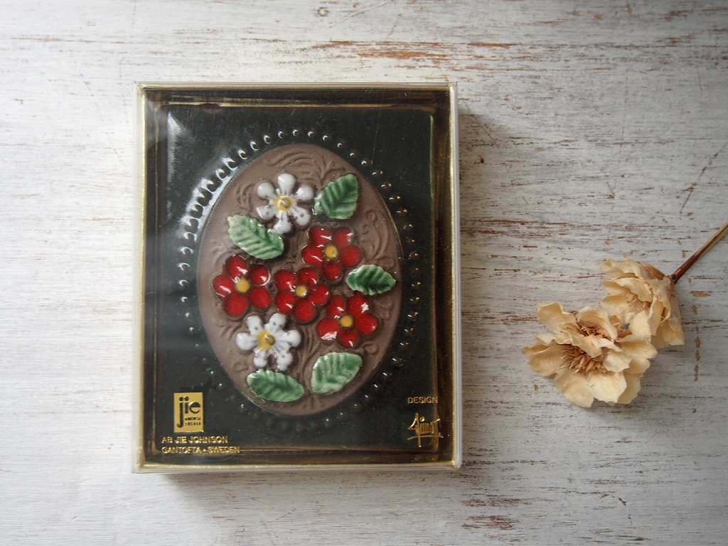 Jie Gantofta 陶板/Aimo Nietosvuori/スウェーデン製ヴィンテージ/花モチーフ/壁掛けインテリア/箱付き