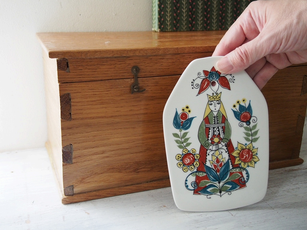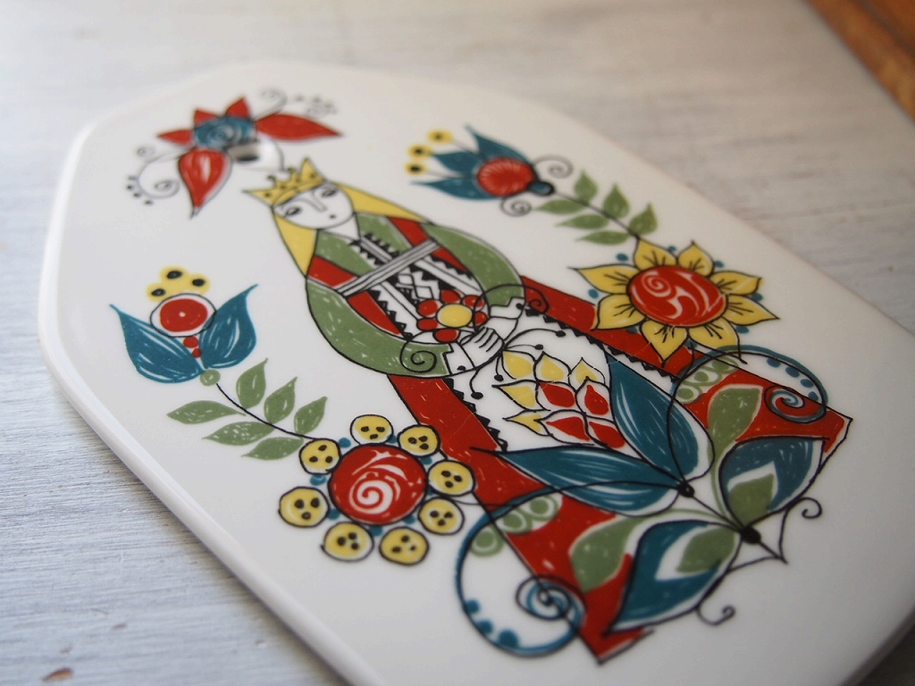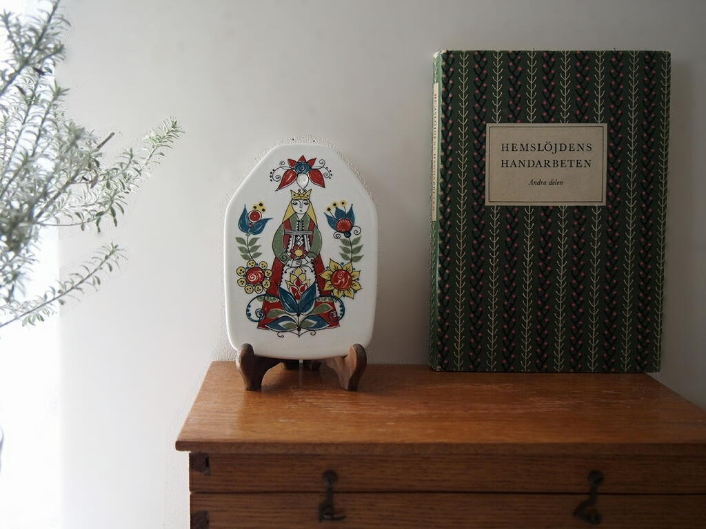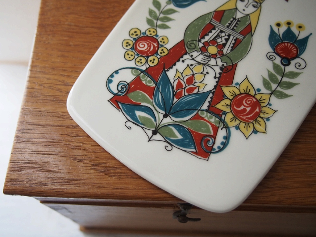 Figgjo フィッギオ SAGA 陶板/手描きの花と人物モチーフ/ノルウェー製ヴィンテージ(1960–70年代)