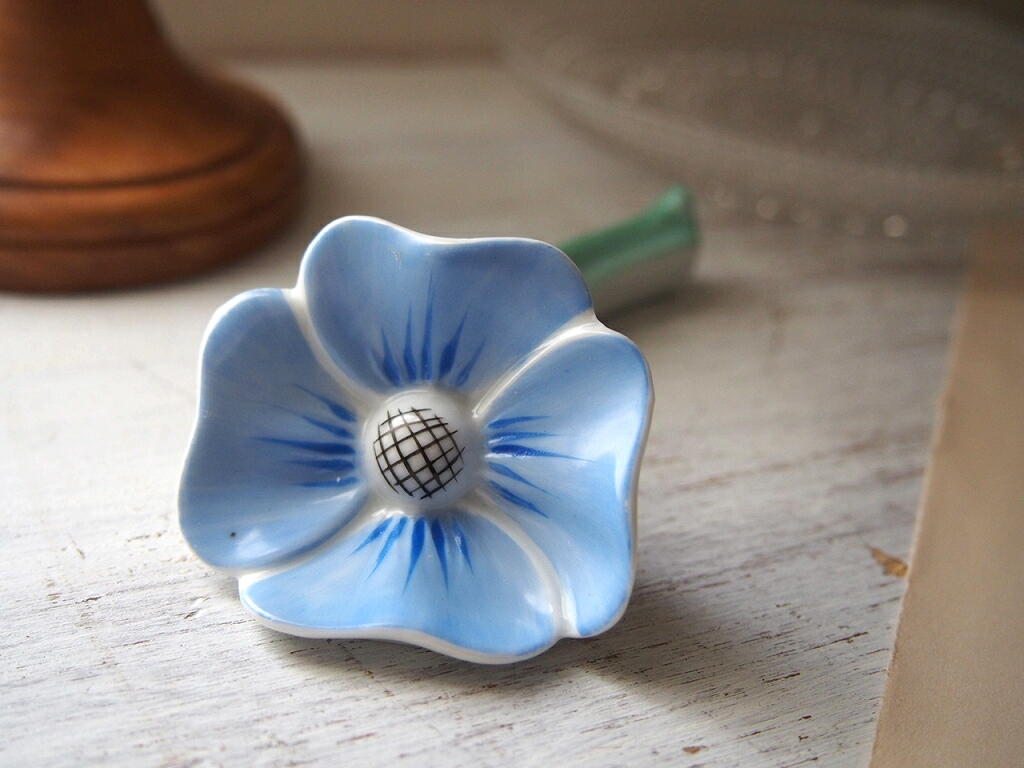 スウェーデン Hagforsの手描き陶器 フラワーカトラリーレスト/ブルーの花/北欧ヴィンテージ