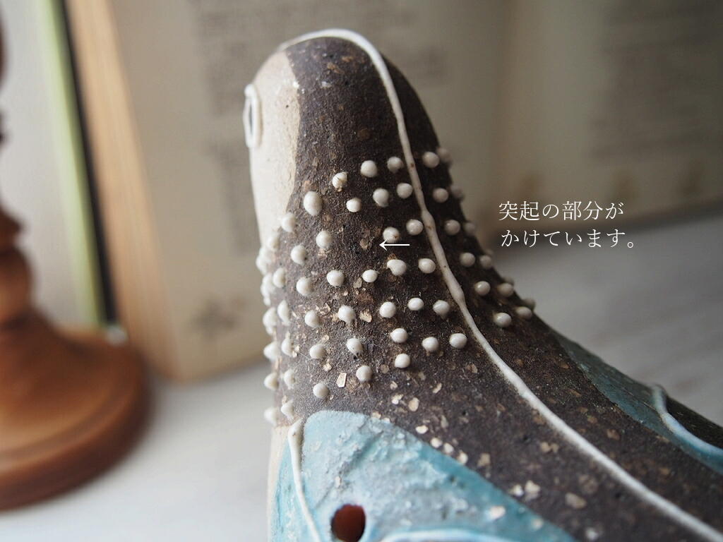 首元や羽の部分には細かな突起や釉薬が丁寧に施