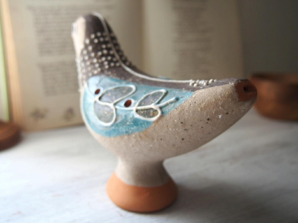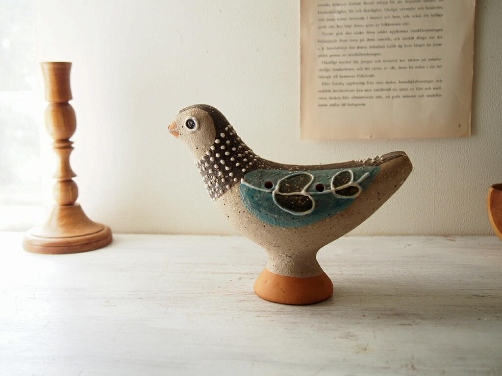 Nittsjo 鳥の陶器オブジェ/Thomas Hellstrom デザイン/スウェーデン製 1960年代/鳥笛・ヴィンテージ置物