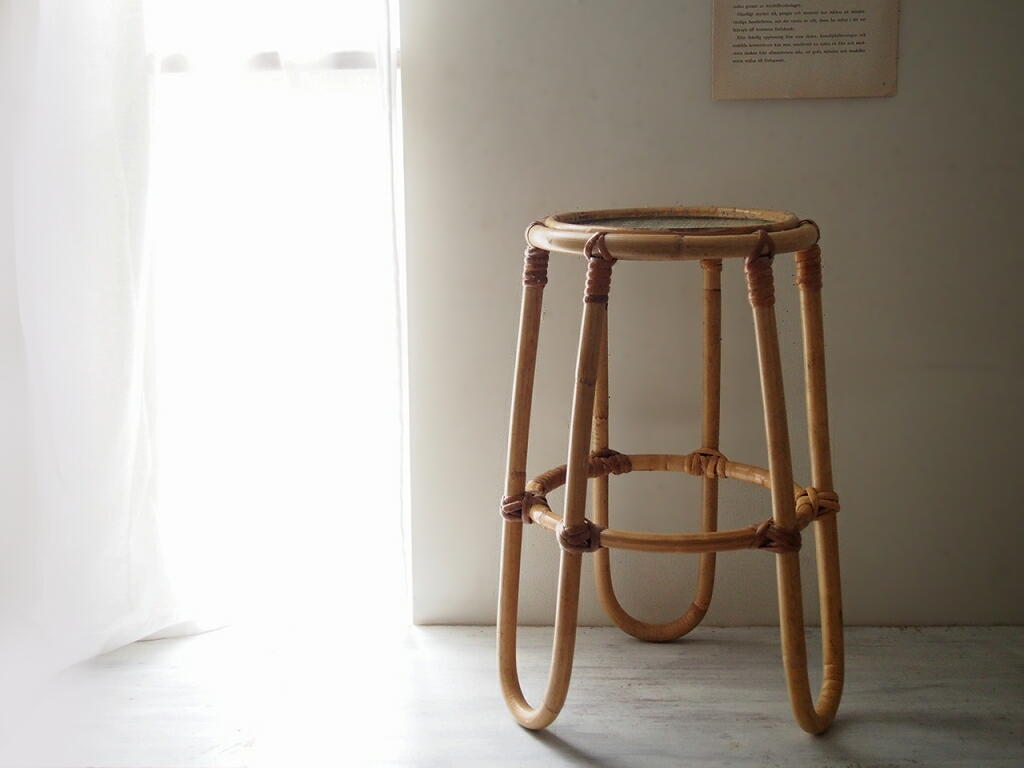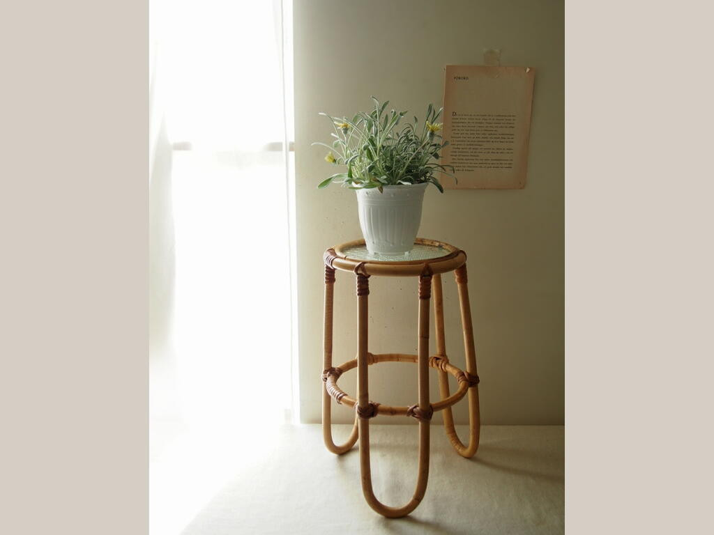 スウェーデン製 ヴィンテージ フラワースタンド/籐×ガラス天板/北欧 ラタン 花台/高さ41cm