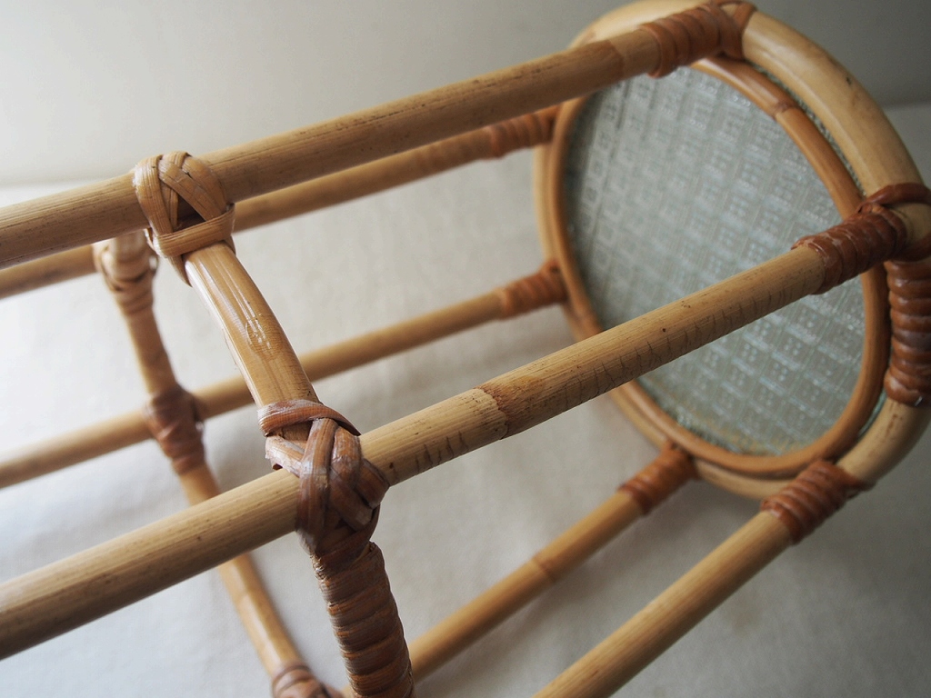 スウェーデン製 ヴィンテージ フラワースタンド/籐×ガラス天板/北欧 ラタン 花台/高さ41cm [FVN251-20307]