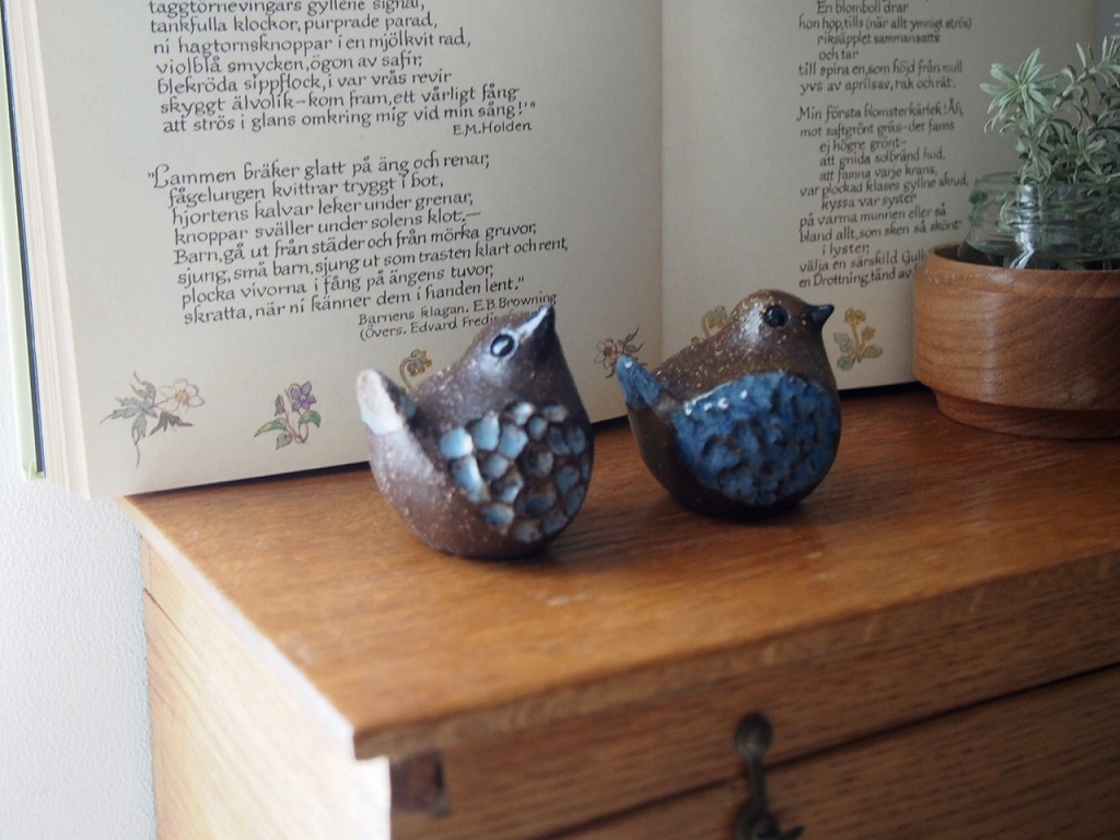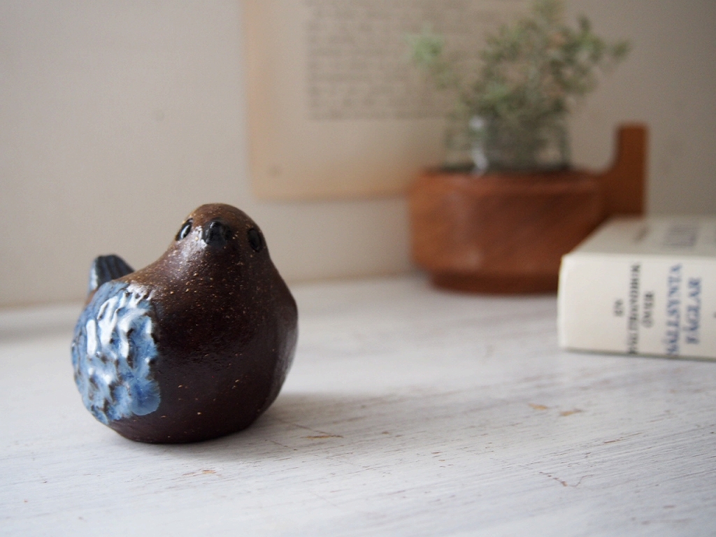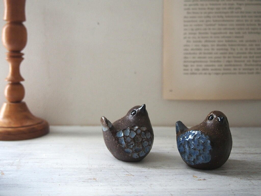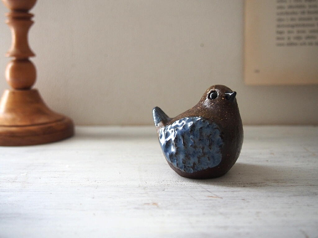 Bengt Wall 鳥の陶器オブジェ/Agneta Wall 制作/手仕事の小さな鳥の置物/青い羽のバードオブジェ/スウェーデン陶芸/スウェーデンヴィンテージ(北欧ヴィンテージ)