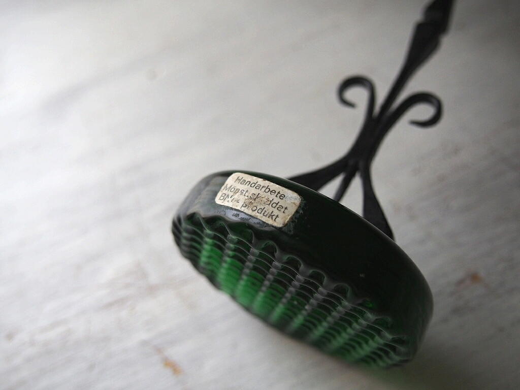 スウェーデン製 ガラス×鉄製キャンドルホルダー/緑ガラスのベース付き/1970年代の北欧キャンドルスタンド/北欧ヴィンテージ(スウェーデンヴィンテージ) [IVM251-20404]